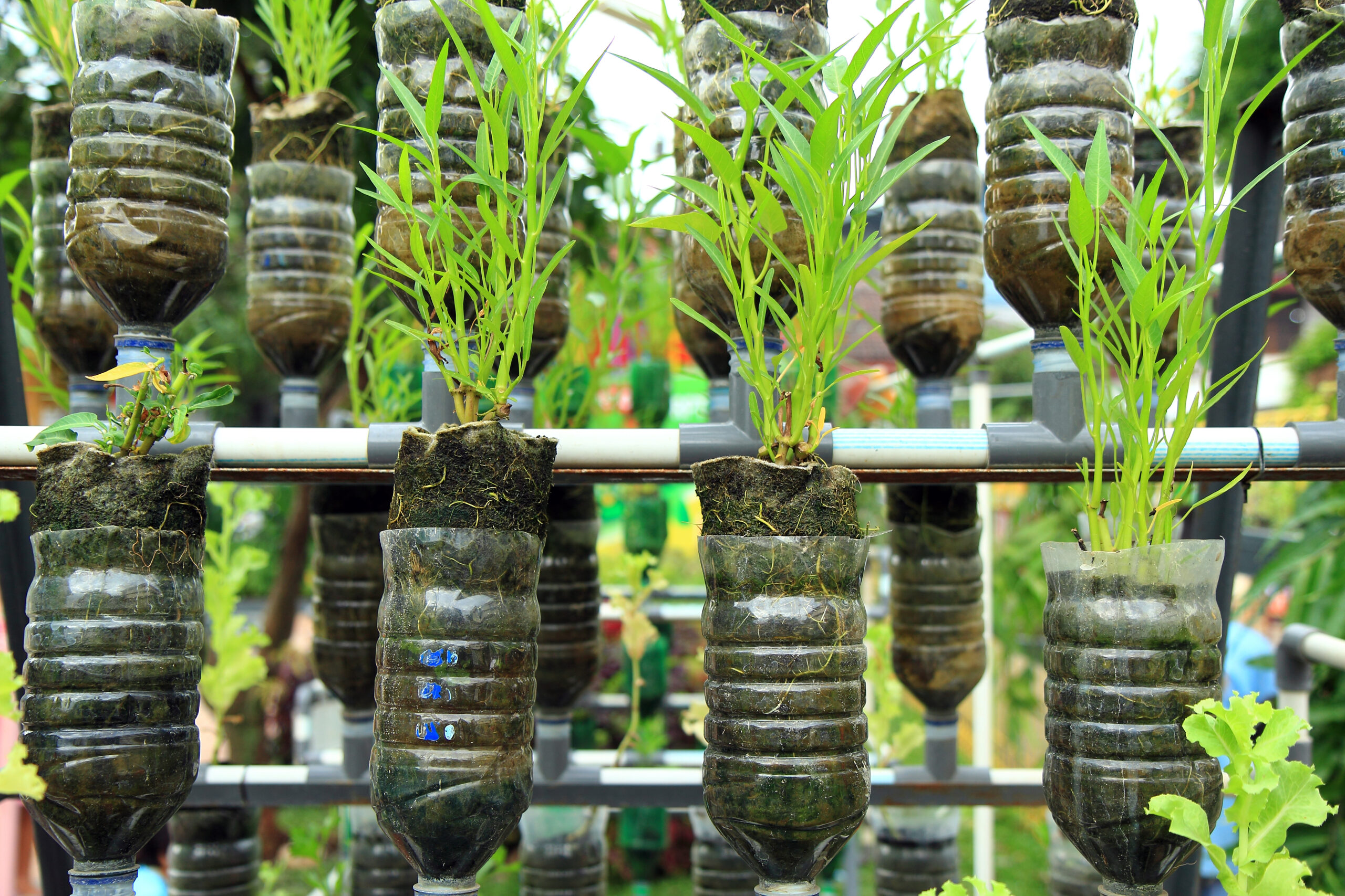 การปลูกผักในกระป๋องและขวดพลาสติก