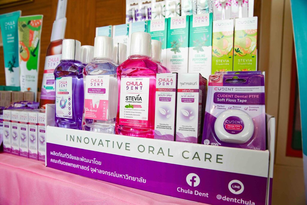 ดร.กรรณิการ์ ชินประสิทธิ์ชัย ประธานเจ้าหน้าที่การตลาด บริษัท ซี.ยู.เดนท์ อินโนเวชั่น จำกัด กล่าวว่า “จากแบรนด์ CUDENT ที่เปิดตัวในระยะแรก เราได้ปรับแบรนด์ใหม่เป็น Chula Dent เพื่อเน้นย้ำจุดแข็งด้านงานวิจัยและเผยแพร่สินค้านวัตกรรมด้วยคุณภาพจากผลงานคณะทันตแพทยศาสตร์ จุฬาฯ ด้วยผลิตภัณฑ์ในกลุ่ม Chula Dent อาทิ ยาสีฟันสูตร Cooling Peppermint, สเปรย์ระงับกลิ่นปาก และน้ำยาบ้วนปาก Trehalose ถูกออกแบบมาเพื่อรองรับปัญหาช่องปากที่พบได้บ่อยในกลุ่มผู้สูงอายุ ผู้มีภาวะปากแห้ง หรือผู้ป่วยหลังการรักษามะเร็งบริเวณศีรษะและลำคอ พร้อมเปิดตัวแบรนด์ใหม่ Pet Denta เพื่อตอบโจทย์การดูแลสุขภาพช่องปากสัตว์เลี้ยงในปี 2568 ปัจจุบันสินค้าเพื่อสุขภาพช่องปาก 6 หมวดหมู่ ได้แก่ ยาสีฟัน แปรงสีฟัน น้ำยาบ้วนปาก สเปรย์ระงับกลิ่นปาก ไหมขัดฟัน และยาสีฟันสำหรับสัตว์เลี้ยง โดยรวมแล้วมีสินค้าทั้งสิ้น 13 รายการ และขยายช่องทางจำหน่ายผ่านทั้งออนไลน์ ออฟไลน์ และ KTC U SHOP” ผู้สนใจสุขภาพช่องปาก สามารถรับรายละเอียดเพิ่มเติมได้ที่ https://www.facebook.com/Chuladent