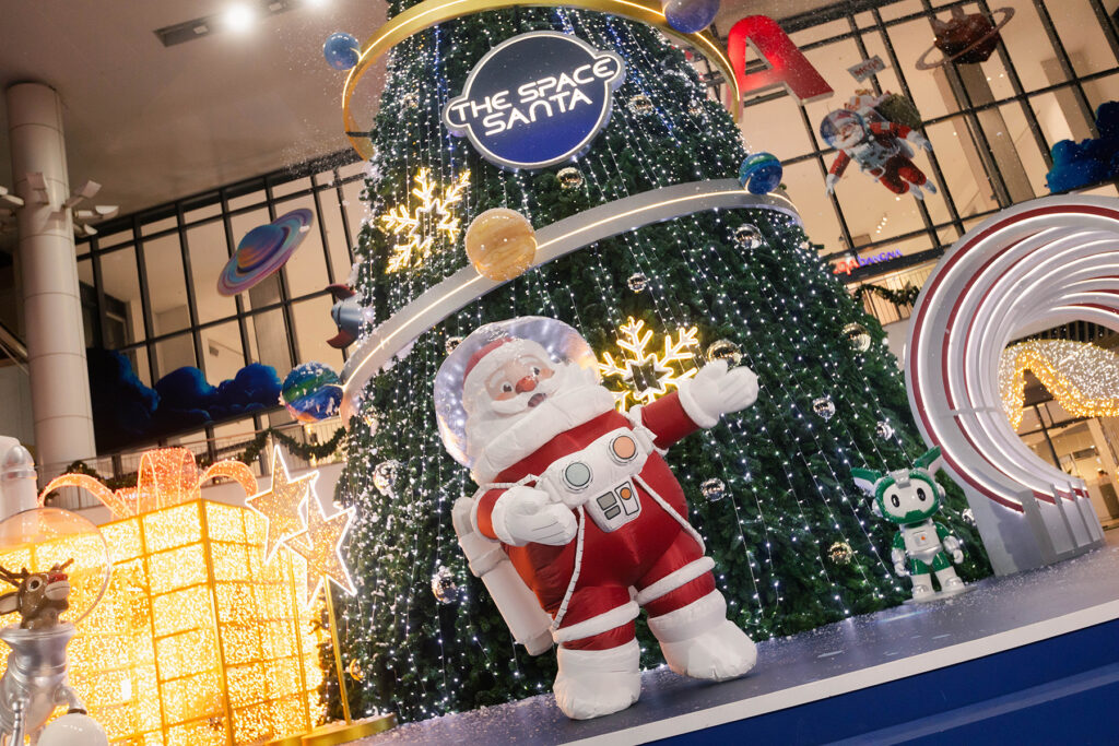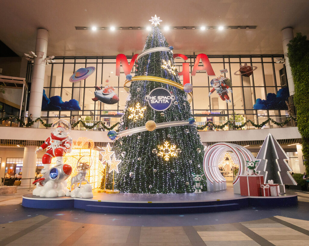 - “แชร์” – แลนด์มาร์กสุดพิเศษ “THE SPACE SANTA” ที่สร้างสรรค์ร่วมกับ TOA ถ่ายทอดแนวคิด “THE GIFT FROM GALAXY” เรื่องราวของซานตาคลอสผู้เดินทางข้ามจักรวาลเพื่อตามหาของขวัญ เพื่อมามอบรอยยิ้มพร้อมประสบการณ์สุดมหัศจรรย์ให้กับทุกคนที่เมกาบางนา ผ่านงานออกแบบสุดล้ำที่ผสานจินตนาการของโลกอวกาศเข้ากับความอบอุ่นของเทศกาลคริสต์มาสอย่างลงตัว GALACTIC CHRISTMAS TREE ต้นคริสต์มาสแห่งจักรวาล เปล่งประกายระยิบระยับราวกับแสงดาวนับพันจากกาแล็กซี SANTA’S SPACE ROCKET ยานอวกาศของซานต้า ที่บรรทุกของขวัญและความสุขสำหรับทุกคนที่มาเยือน STELLAR PANORAMA ZONE โซนถ่ายภาพแห่งจักรวาล พร้อมเก็บความทรงจำที่น่าประทับใจในทุกมุม และโซน TOA SPACE GIFT พื้นที่จำลองอวกาศสุดล้ำกลางเมกาบางนา รายล้อมด้วยดวงดาวและของขวัญที่ลอยตัวเหนือศีรษะ บนพื้นที่กว่า 1,200 ตารางเมตร ชวนให้ทุกคนในครอบครัวมาร่วมถ่ายภาพส่งต่อความประทับใจกันตลอดปลายปีนี้ บริเวณโซนเมน เอนทรานซ์ และโซนฟู้ดวอล์ค พลาซ่า