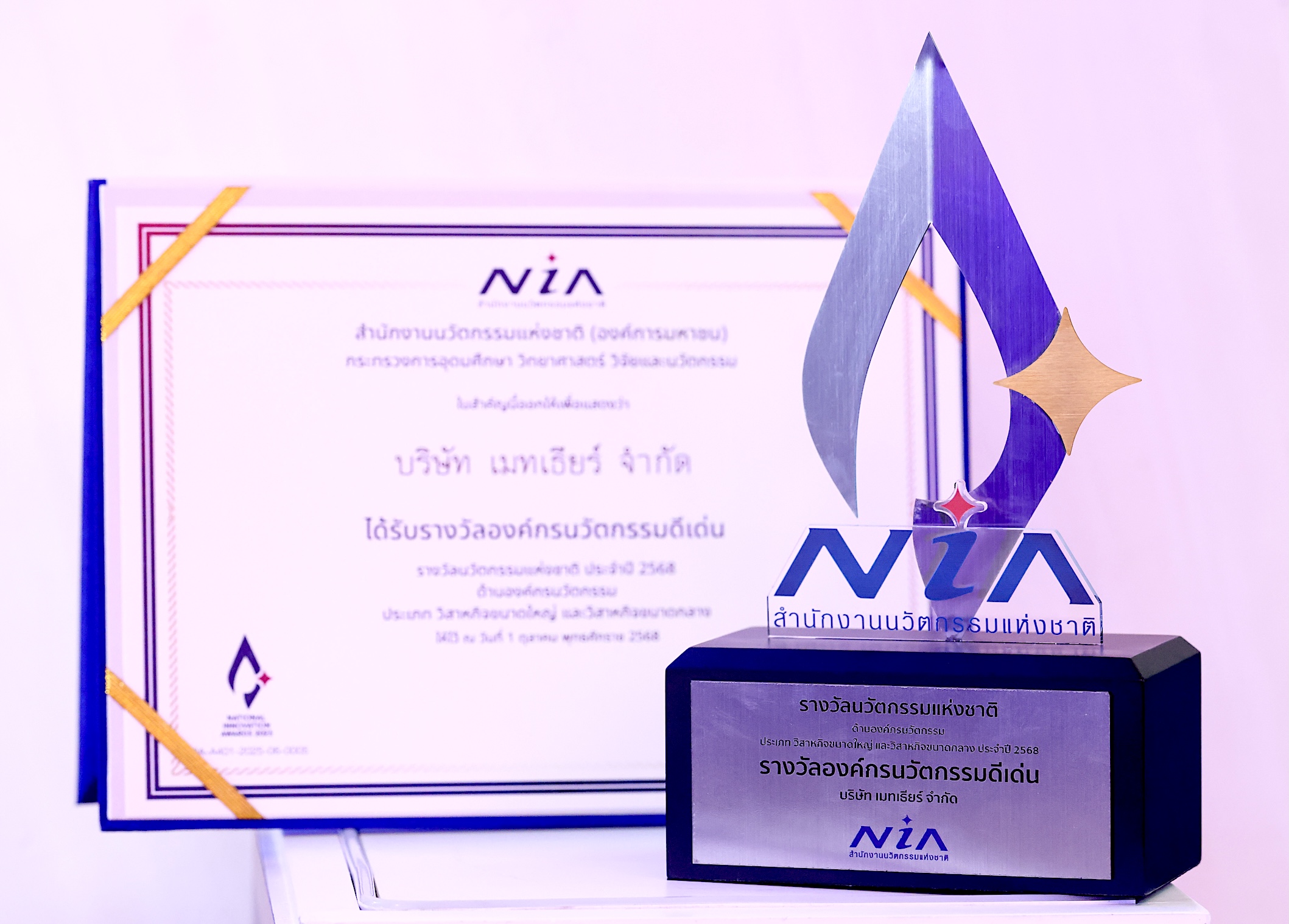 บริษัท เมทเธียร์ จำกัด (Metthier) ประกาศศักดาในเวทีนวัตกรรมไทย คว้ารางวัล นวัตกรรมแห่งชาติ ประจำปี 2568 ด้านองค์กรนวัตกรรม ประเภทวิสาหกิจขนาดใหญ่และวิสาหกิจขนาดกลาง จากสำนักงานนวัตกรรมแห่งชาติ (องค์การมหาชน) หรือ NIA ในงาน “วันนวัตกรรมแห่งชาติ 2568” ที่จัดขึ้น ณ โรงแรมดุสิตธานี กรุงเทพฯ รางวัลนวัตกรรมแห่งชาติ ถือเป็น รางวัลอันทรงเกียรติสูงสุดของวงการนวัตกรรมไทย ที่มอบให้แก่องค์กรที่มีความโดดเด่นด้านการบริหารจัดการนวัตกรรมในองค์กร โดยใช้ ความรู้ เทคโนโลยี และความคิดสร้างสรรค์ มาประยุกต์ใช้ในทุกมิติ ตั้งแต่ระดับยุทธศาสตร์ กระบวนการ ไปจนถึงระดับโครงสร้างพื้นฐาน เพื่อสร้างคุณค่าและการเติบโตอย่างยั่งยืนให้แก่องค์กรและประเทศชาติ