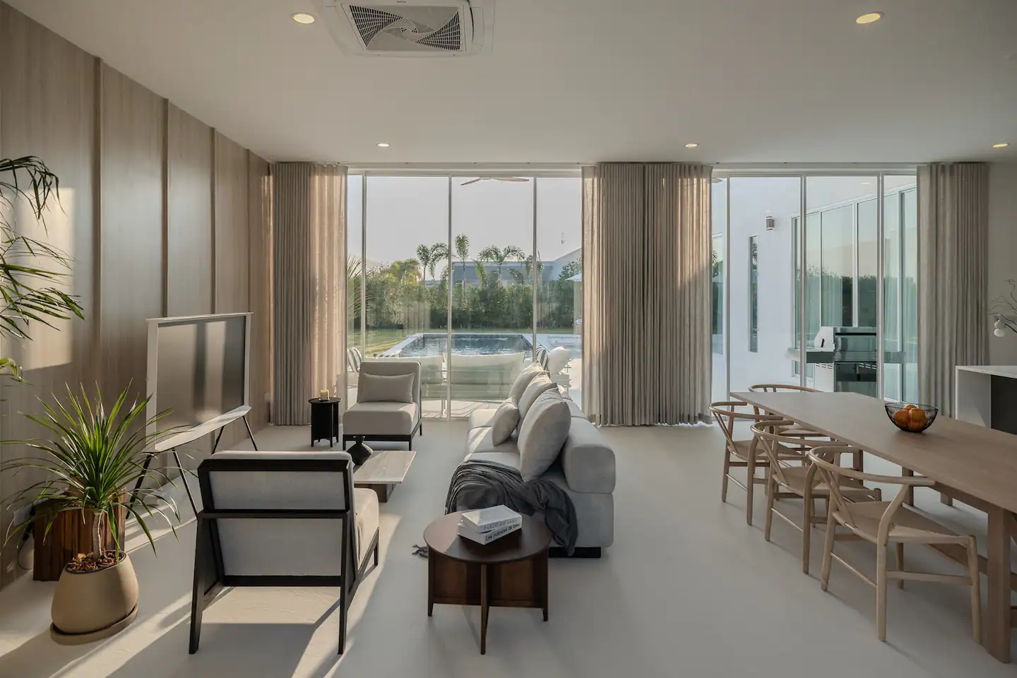 หมวดหมู่ที่พักเล่นกอล์ฟ (Golfing) – พูลวิลล่าในบรรยากาศปาล์มสปริงส์, ประจวบคีรีขันธ์ ยกระดับประสบการณ์การเล่นกอล์ฟที่วิลล่าสไตล์ปาล์มสปริงส์ในเขาเต่า หัวหิน พูลวิลล่าส่วนตัวแห่งนี้มี 4 ห้องนอน 4 ห้องน้ำ พร้อมกับพื้นที่ใช้สอยเปิดโล่งกว้างขวางและสระว่ายน้ำ ตั้งอยู่ใกล้สนามกอล์ฟ เหมาะอย่างยิ่งสำหรับผู้ที่รักการออกรอบและต้องการการพักผ่อนสุดพิเศษ