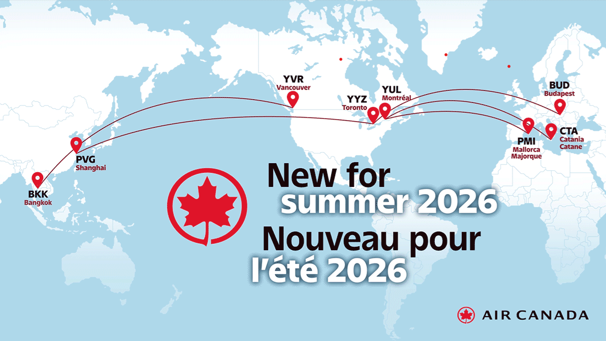 กรุงเทพมหานคร, 11 กันยายน 2025 – แอร์แคนาดา ประกาศขยายเส้นทางบินระหว่างประเทศต้อนรับซัมเมอร์ปี 2026 เพิ่มจุดหมายปลายทางใหม่ทั้งในยุโรปและเอเชีย โดยเริ่มตั้งแต่ปีหน้า สายการบินจะเปิดเส้นทางใหม่มอนทรีออล-คาตาเนีย เกาะซิซิลี ประเทศอิตาลี และ มอนทรีออล-ปาล์มา เด มายอร์กา ประเทศสเปน พร้อมการกลับมาให้บริการอีกครั้งในเส้นทางบินตรงระหว่างโตรอนโตสู่บูดาเปสต์ ประเทศฮังการี และเซี่ยงไฮ้ ประเทศจีน รวมไปถึงการเพิ่มจำนวนเที่ยวบินไปยังปราก ประเทศสาธารณรัฐเช็ก นอกจากนี้แอร์แคนาดายังได้ขยายการให้บริการในเที่ยวบินที่ได้รับความนิยมสูงอย่าง แวนคูเวอร์–กรุงเทพฯ ให้ครอบคลุมกับความต้องการของผู้โดยสารตลอดทั้งปี เพื่อตอกย้ำความแข็งแกร่งของแอร์แคนาดาในฐานะสายการบินจากอเมริกาเหนือเพียงรายเดียวที่ให้บริการเที่ยวบินตรงแบบไม่แวะพักสู่ประเทศไทย