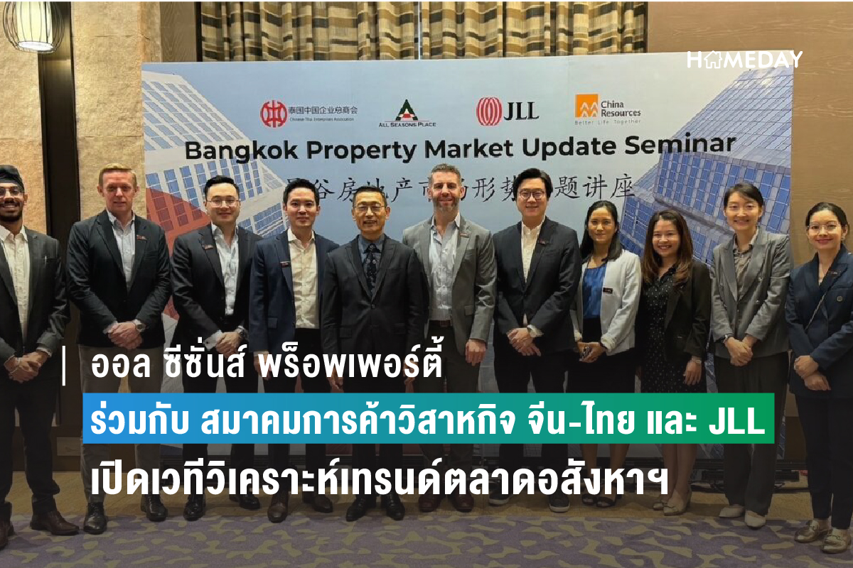เมื่อวันที่ 30 พฤศจิกายน ที่ผ่านมา บริษัท ออล ซีซั่นส์ พร็อพเพอร์ตี้ จำกัด ร่วมกับ สมาคมการค้าวิสาหกิจ จีน-ไทย และ บริษัท โจนส์ แลง ลาซาลล์ (ประเทศไทย) จำกัด จัดงาน “การสัมมนาพิเศษเกี่ยวกับสถานการณ์ตลาดอสังหาริมทรัพย์ในกรุงเทพฯ” หวังดึงดูดความสนใจและการมีส่วนร่วมในภาคอุตสาหกรรมอสังหาริมทรัพย์ โดยมี นายหวง เจา หยัง (Mr. Huang Zhaoyang) กรรมการบริหาร บริษัท ออล ซีซั่นส์ พร็อพเพอร์ตี้ จำกัด เป็นประธานกล่าวเปิดงานต้อนรับและขอบคุณผู้เข้าร่วมการประชุมสัมมนา โดยหวังว่าการประชุมสัมมนาครั้งนี้จะสามารถแบ่งปันประสบการณ์และข้อมูลเชิงลึกต่างๆ สู่ภาคธุรกิจอสังหาริมทรัพย์นี้ได้มากยิ่งขึ้น