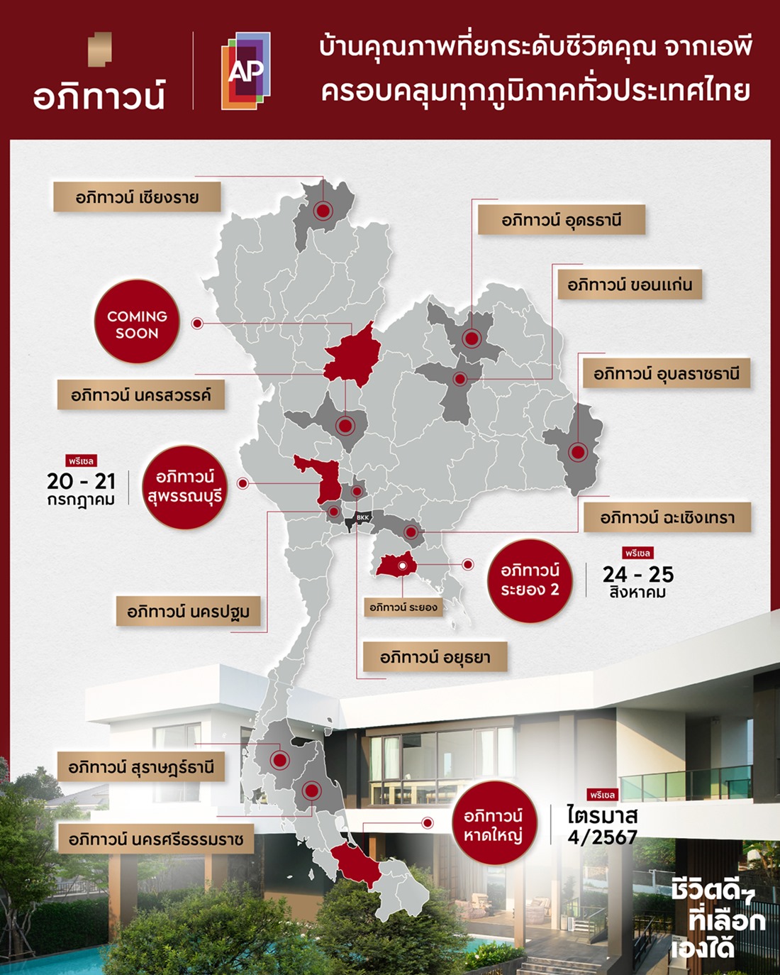 โดยนำประสบการณ์ความเชี่ยวชาญในการพัฒนาโครงการที่อยู่อาศัยและพื้นที่คุณภาพเพื่อยกระดับคุณภาพชีวิตของคนเมือง บุกขยายการลงทุนพัฒนาโครงการผ่านแบรนด์ ‘อภิทาวน์’ ที่จะนำเสนอโปรดักต์บ้านรูปแบบใหม่ ดีไซน์เป็นเอกลักษณ์เฉพาะแต่ละภูมิภาค เพื่อให้มั่นใจว่าจะตอบโจทย์รองรับดีมานด์และไลฟ์สไตล์ที่แตกต่างกันของลูกค้าในทุกภูมิภาคทั่วประเทศไทย” และในปีนี้ แบรนด์อภิทาวน์ก้าวเข้าสู่ปีที่ 5 กับการขยายการพัฒนาโครงการที่เติบโตอย่างเป็นรูปธรรม นำเสนอบ้านคุณภาพผ่านโปรดักต์ที่หลากหลาย ทั้งบ้านเดี่ยว ทาวน์โฮม และบ้านแฝดเข้าไปครองความเชื่อมั่นจากลูกค้าครอบครัวในจังหวัดต่างๆ ด้วย Roadmap การลงทุนพัฒนาโครงการที่ต่อเนื่อง รวมทั้งสิ้น 15 โครงการใหม่และพร้อมอยู่ มูลค่าโครงการกว่า 13,530 ล้านบาท และเป็นโครงการใหม่ในปีนี้ จำนวน 4 โครงการใหม่ มูลค่ารวม 3,200 ล้านบาท โดยนำร่องเปิดขาย 3 หัวเมืองแรก ได้แก่ อภิทาวน์ สุพรรณบุรี มูลค่าโครงการ 750 ล้านบาท, อภิทาวน์ ระยอง 2 มูลค่าโครงการ 950 ล้านบาท และอภิทาวน์ หาดใหญ่ มูลค่าโครงการ 800 ล้านบาท