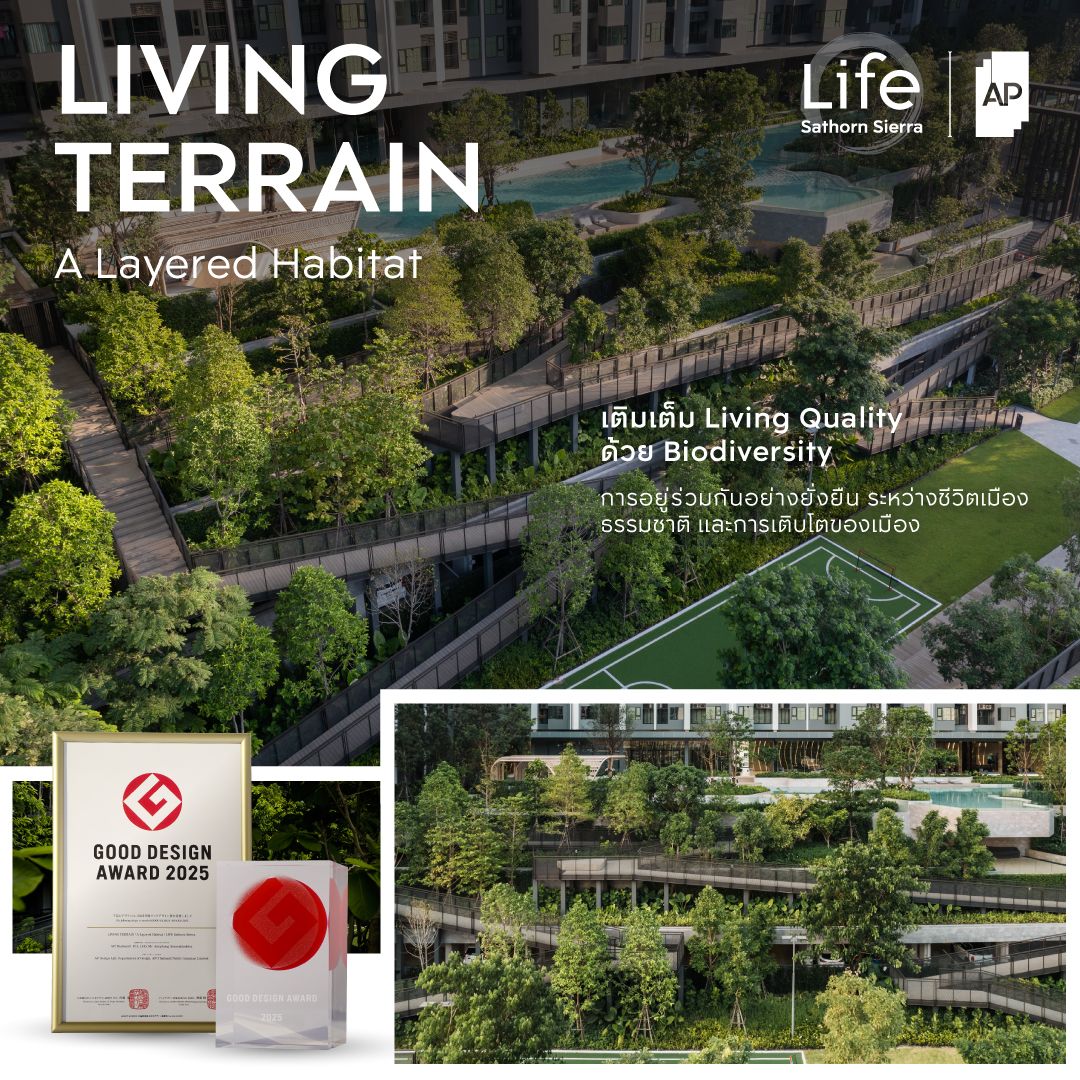 บทสรุปคำตัดสินของคณะกรรมการ GOOD DESIGN AWARD ได้กล่าวถึงโครงการ LIFE Sathorn Sierra – LIVING TERRAIN: A Layered Habitat ว่า “LIFE Sathorn Sierra เป็นการพัฒนาและการออกแบบคอนโดมิเนียมที่ยอดเยี่ยมที่มีเป้าหมายเพื่อสร้างความกลมกลืนกับธรรมชาติและฟื้นฟูระบบนิเวศในที่พักอาศัยของคนเมือง พื้นที่ส่วนกลาง LIVING TERRAIN: A Layered Habitat ที่ได้รับการดีไซน์เป็นแพลตฟอร์มพื้นที่ส่วนกลาง 5 ระดับ ไม่เพียงแต่สนับสนุนคุณภาพชีวิตที่ดี สุขภาพกายและสุขภาพใจของผู้อยู่อาศัยเท่านั้น แต่ยังช่วยปกป้องความหลากหลายทางชีวภาพในเมือง ผ่านการผนวกธรรมชาติเข้าเป็นส่วนหนึ่งของโครงสร้างอาคารอย่างเป็นระบบ”
