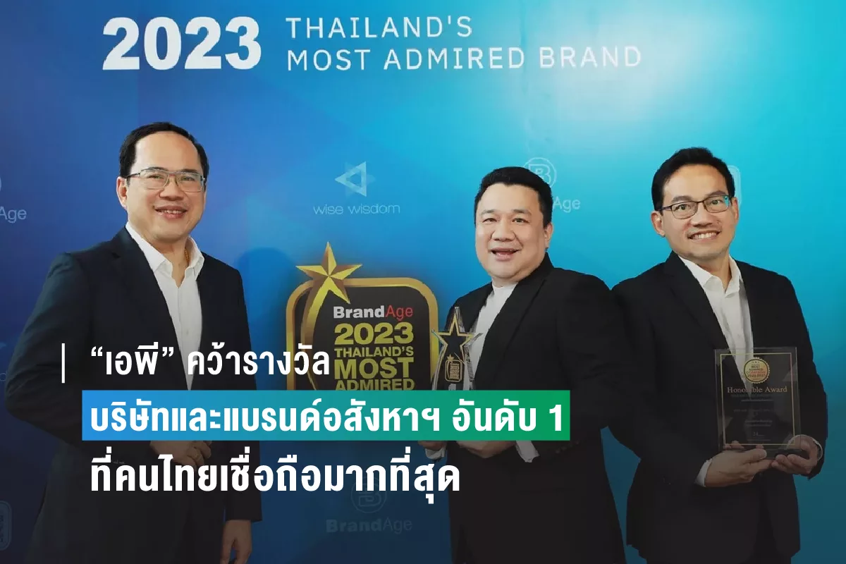 • เอพี ไทยแลนด์ ประเดิมต้นปีกับความสำเร็จตามแผน AP INCLUSIVE GROWTH เข้ารับ 4 รางวัลสำคัญประจำปี 2023 จากงาน 2023 Thailand’s Most Admired Award
