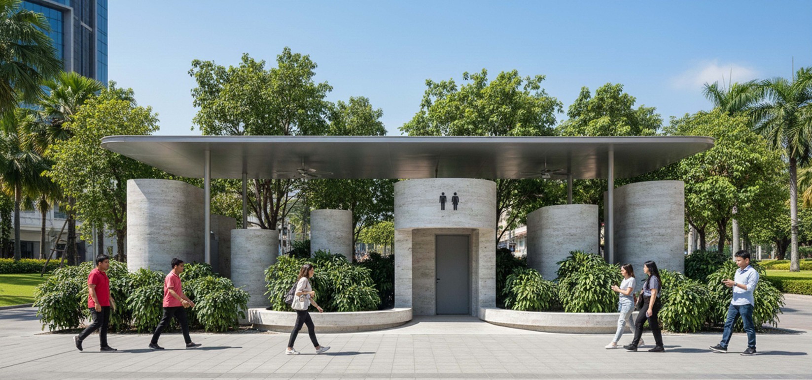 1.ประเภทบริษัทผู้ออกแบบวิชาชีพ ได้แก่ ผลงาน “The Rest-Garden” โดยสิธาพร พึ่งสำราญ จากสิธาอาร์คิเทค กับนิยาม Happy Toilet ว่าต้องเป็นห้องน้ำที่ตอบโจทย์พื้นฐานที่สุดของผู้ใช้ คือสะอาด ปราศจากกลิ่น และใช้งานได้ทันที เพียงเท่านี้ก็ถือเป็นความสุขแล้วในช่วงเวลาฉุกเฉิน จึงเน้นการออกแบบที่ใช้งานได้จริง โดยใช้องค์ประกอบธรรมชาติอย่างลม แสงแดด และพื้นที่เปิดโล่ง มาเป็นหัวใจสำคัญ เพื่อแก้ปัญหาเรื่องกลิ่นและความอับชื้นของห้องน้ำสาธารณะ ด้วยการจัดทิศทางลม (Flow) ให้อากาศถ่ายเท พร้อมยกหลังคาเปิดรับแสงธรรมชาติช่วยฆ่าเชื้อโรค รวมถึงลดผนังทึบที่ไม่จำเป็นอย่างโซนอ่างล้างมือ เพื่อสร้างพื้นที่โปร่งโล่งน่าใช้งาน