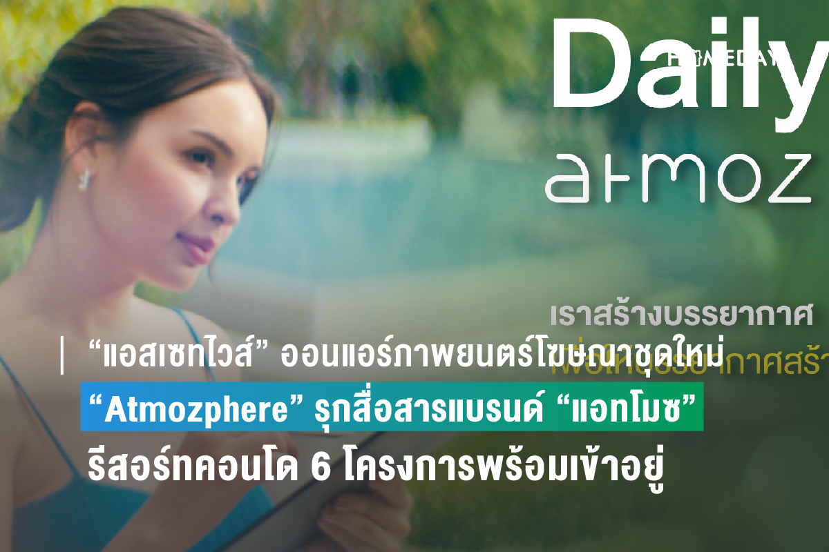 “แอสเซทไวส์” เปิดตัวภาพยนตร์โฆษณาชุดใหม่ “Atmozphere” สร้างการรับรู้ต่อเนื่องให้กับแบรนด์ “แอทโมซ” (ATMOZ) คอนโดมิเนียมสไตล์รีสอร์ท ภายใต้คอนเซ็ปต์ “Daily Atmosphere” พร้อมดึง 2 นางงาม มานิตา ดวงคำ ฟาร์เมอร์ นางสาวไทยประจำปี 2565 และแอนนา เสืองามเอี่ยม มิสยูนิเวิร์สไทยแลนด์ 2022 ร่วมถ่ายทอดความสุข ออนแอร์แล้ววันนี้ทางยูทูบ และเฟซบุ๊กแอสเซทไวส์ พร้อมทยอยส่งมอบแอทโมซสร้างเสร็จ 6 โครงการ มูลค่ารวม 9,650 ล้านบาท