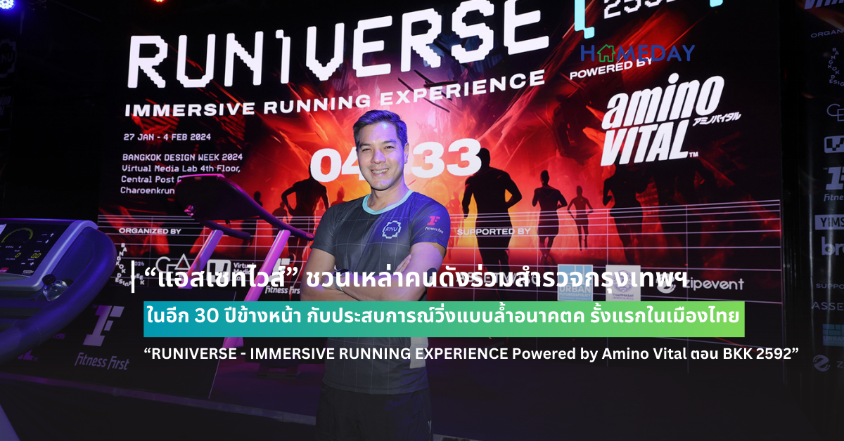 เริ่มแล้ว !!! กับกิจกรรม “RUNIVERSE – IMMERSIVE RUNNING EXPERIENCE Powered by Amino Vital ตอน BKK 2592” หนึ่งในกิจกรรมไฮไลท์จากงาน Bangkok Design Week 2024 กับครั้งแรกในเมืองไทย ของการพลิกโฉมการวิ่งรูปแบบใหม่ด้วย IMMERSIVE RUNNING พร้อมพาทุกคนร่วมวิ่งสำรวจเมืองกรุงเทพฯ ในอีก 30 ปีข้างหน้า และวิธีการกอบกู้กรุงเทพมหานครจากปัญหาสิ่งแวดล้อมที่เปลี่ยนแปลงไป