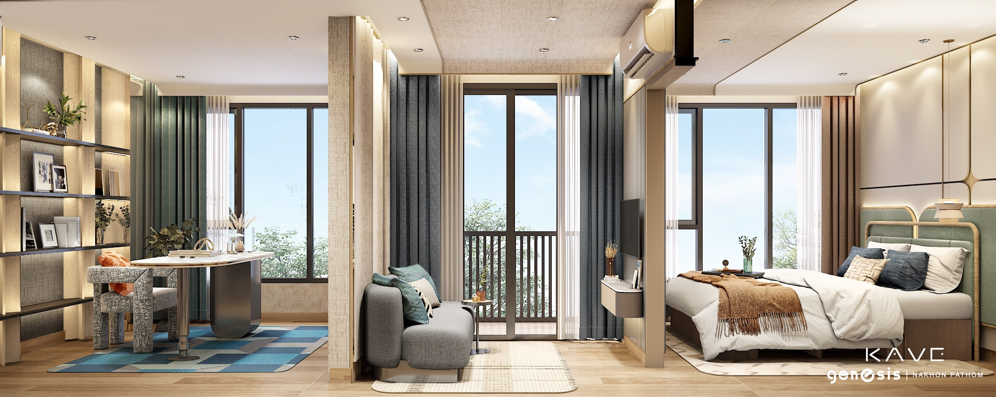 นอกจากนี้ โครงการยังถูกออกแบบอย่างโดดเด่นมีเอกลักษณ์ ซึ่งนำกลิ่นอายจากประวัติศาสตร์ทวารวดีในสมัยเก่าและนวัตกรรมใหม่ของการใช้ชีวิต มาประยุกต์ใช้ให้มีความทันสมัยมากขึ้น ภายใต้คอนเซ็ปต์ “A Futuristic Element with Thai’s twist” มาพร้อมการเลือกสรรเฟอร์นิเจอร์แบบ Fully Furnished ยังตอบรับ ไลฟ์สไตล์ของคนรุ่นใหม่ ด้วยสิ่งอำนวยความสะดวกและพื้นที่ส่วนกลาง ที่จัดเต็มยิ่งกว่าใคร เพื่อให้สื่อถึงความสนุกสนานเหมาะกับวัยรุ่นยุคใหม่ เเต่ผสมผสานไปด้วยกลิ่นอายของนครปฐม มากถึง 30 กิจกรรม* อาทิ Kave Club, สระว่ายน้ำที่จัดเต็มให้ถึง 2 สระ, CO-KITCHEN SPACE, LIVE TIKTOK STUDIO, READING LOUNGE, ที่ซ่อนตัวอยู่ในทุกอาคาร เพื่อรองรับทุกไลฟ์สไตล์ที่หลากหลายของชาว GEN Z ในราคาเริ่มต้นเพียง 1.79 ล้านบาท*
