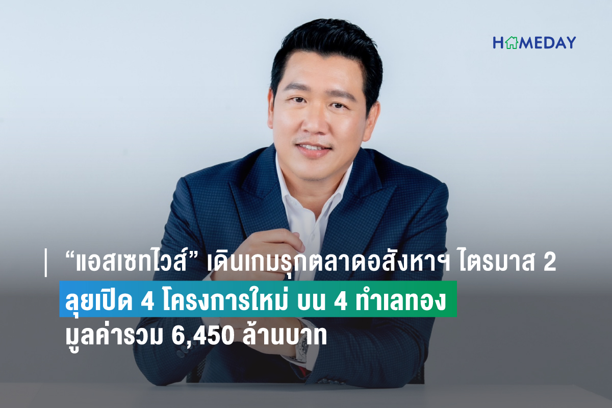 นายกรมเชษฐ์ วิพันธ์พงษ์ ประธานเจ้าหน้าที่บริหาร บริษัท แอสเซทไวส์ จำกัด (มหาชน) บริษัทพัฒนาอสังหาริมทรัพย์ที่เป็นผู้นำด้านไลฟ์สไตล์ ภายใต้แนวคิด “ความสุขที่ออกแบบมาเพื่อคุณ” หรือ “We Build Happiness” กล่าวว่า ภาพรวมเศรษฐกิจไทยยังมีแนวโน้มดีขึ้น ทั้งปัจจัยบวกจากกำลังซื้อของผู้บริโภคในประเทศที่เพิ่มขึ้นอย่างต่อเนื่องและการท่องเที่ยวในประเทศที่โดดเด่นและคึกคัก จนส่งผลให้ไตรมาส 1 บริษัทสามารถกวาดยอดขายได้สูงถึง 3,495 ล้านบาท และเพื่อตอบรับดีมานด์กำลังซื้อของผู้บริโภคอย่างต่อเนื่อง แอสเซทไวส์จึงเดินหน้าเปิดตัว 4 โครงการใหม่ 3 แบรนด์สำคัญ อย่าง เคฟ (KAVE), แอทโมซ (ATMOZ) และโมดิซ (MODIZ) บน 4 ทำเลศักยภาพ ศาลายา, บางแสน, ลาดพร้าว-วังหิน และเกษตร – ศรีปทุม มูลค่ารวมกว่า 6,450 ล้านบาท