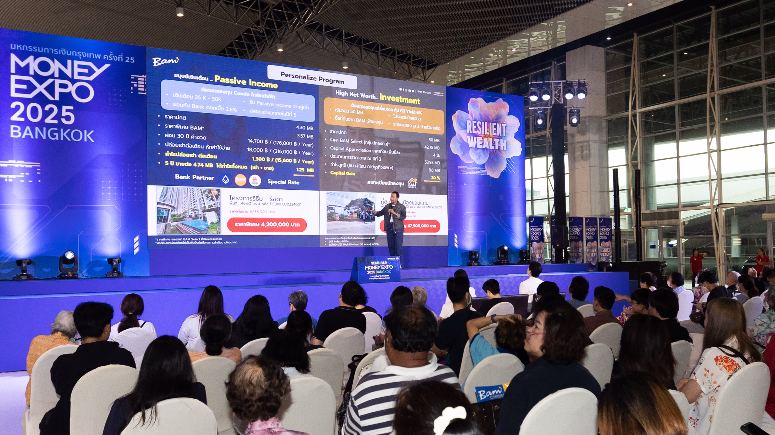 ดร.รักษ์ วรกิจโภคาทร ประธานเจ้าหน้าที่บริหาร บริษัทบริหารสินทรัพย์ กรุงเทพพาณิชย์ จำกัด (มหาชน) หรือ BAM กล่าวในงานเสวนา หัวข้อ “ทรัพย์รอขาย NPA กระแสใหม่ การลงทุนที่น่าจับตา” ในงานมหกรรมการเงินกรุงเทพ ครั้งที่ 25 MONEY EXPO 2025 BANGKOK เมื่อวันเสาร์ที่ 17 พฤษภาคม 2568 ที่ผ่านมา ณ บริเวณเวทีกลาง หน้าชาเลนเจอร์ 2 อาคารชาเลนเจอร์ 2-3 อิมแพ็ค เมืองทองธานี โดยมี นายโอภาส ถิรปัญญาเลิศ หรือ “คุณใหญ่” จาก เพจ โอภาส ใหญ่ Happy Investor และ นางสาวศิรประภา รักษ์สุจริต หรือ “คุณจิ๊บ” จาก เพจอสังหาเรื่องจิ๊บๆ “2 กูรูชั้นนำด้านอสังหาริมทรัพย์” ร่วมในงานนี้ ท่ามกลางความสนใจเข้าร่วมรับฟังของนักลงทุนและประชาชนทั่วไปเป็นจำนวนมาก