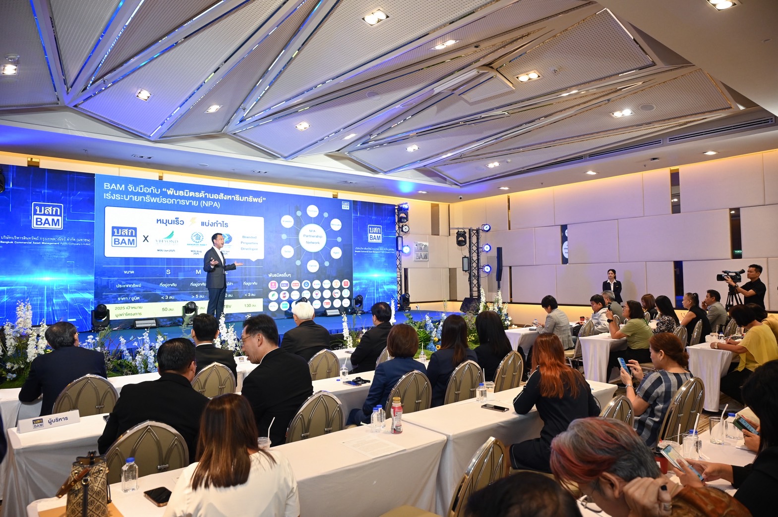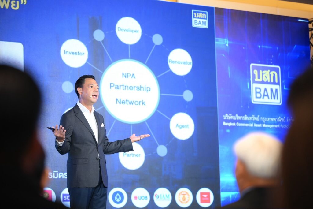 ขณะที่การบริหารจัดการทรัพย์สินรอการขาย หรือ NPA เดินหน้ากลยุทธ์พันธมิตรทางธุรกิจ (NPA Partnership) ซึ่งเป็นกลยุทธ์สำคัญที่มุ่งขยายฐานธุรกิจและสร้างรายได้เพิ่มขึ้น ผ่านความร่วมมือกับบริษัทพันธมิตรที่มีศักยภาพ อาทิ บริษัทอสังหาริมทรัพย์ ได้แก่ บริษัท วี บียอนด์ ดีเวลอปเม้นท์ จำกัด (มหาชน) บริษัท ไซมิส แอสเสท จำกัด (มหาชน) และบริษัท บางกอก แอสเซท อินเตอร์กรุ๊ป จำกัด (มหาชน) และสถาบันการเงิน เช่น ธนาคารยูโอบี ธนาคารกรุงเทพ ธนาคารอาคารสงเคราะห์ โดย BAM มุ่งเน้นการคัดสรรและนำเสนอทรัพย์ NPA ขนาด Big Lots ให้พันธมิตรนำไปพัฒนาและเพิ่มมูลค่า ทั้งบ้านเดี่ยว อาคารพาณิชย์ คอนโดมิเนียม และที่ดินเปล่า เพื่อพลิก “ทรัพย์ร้าง” ให้กลายเป็น “ทรัพย์สร้างกำไร” ต่อยอดเป็นทรัพย์สินที่สร้างรายได้ให้กับ BAM อย่างต่อเนื่อง ลดระยะเวลาการถือครอง และสร้างผลตอบแทนที่สูงขึ้นในระยะยาว โดย BAM สามารถสร้างยอดขายจากการจำหน่ายทรัพย์แปลงใหญ่ได้ถึง 1,450 ล้านบาท ซึ่งทรัพย์ดังกล่าวเป็นที่ดินเปล่าจำนวน 50 แปลง ตั้งอยู่ที่อำเภอเมืองเชียงใหม่ จังหวัดเชียงใหม่ เนื้อที่รวม 26-3-37.40 ไร่