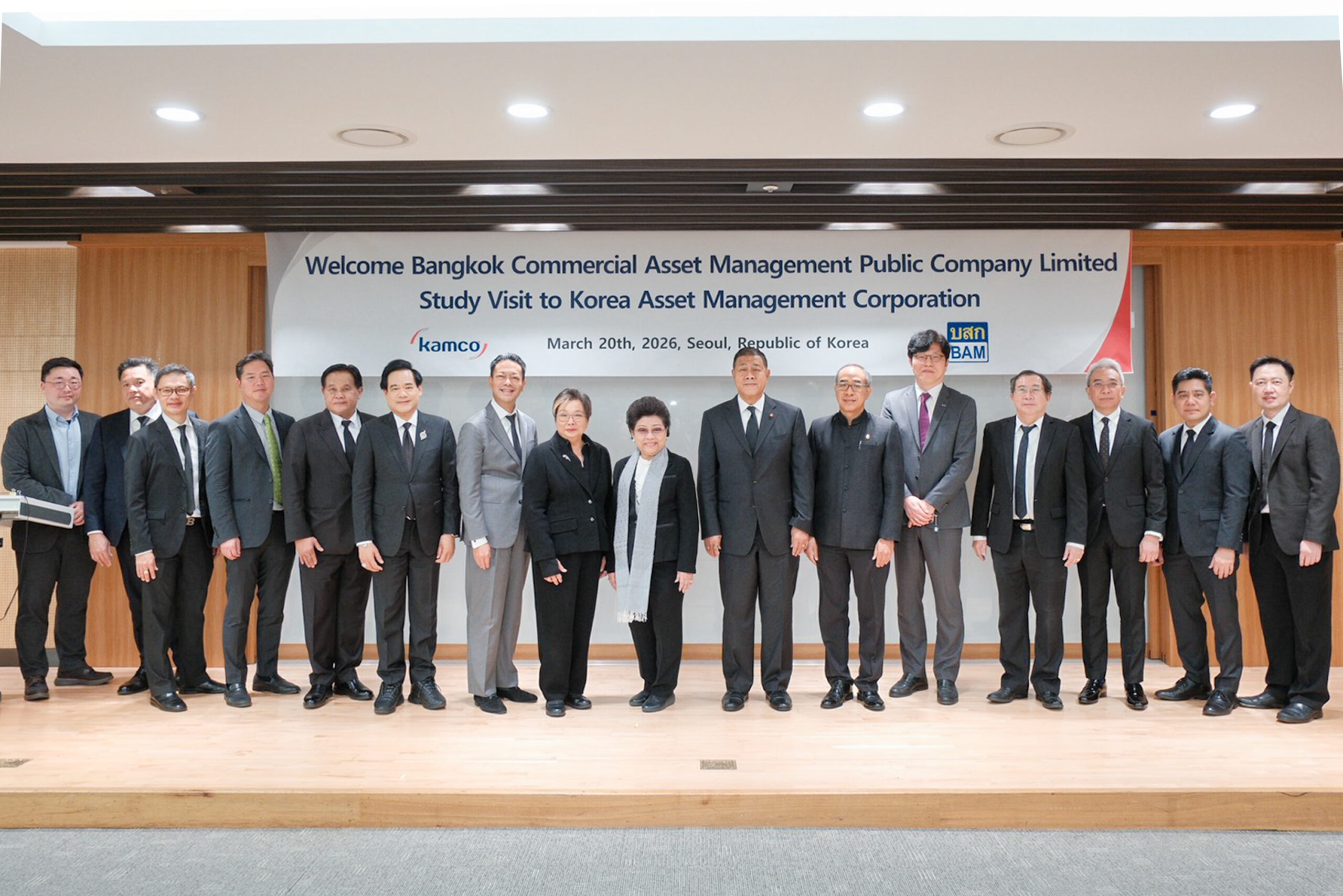 บริษัทบริหารสินทรัพย์ กรุงเทพพาณิชย์ จำกัด (มหาชน) หรือ BAM นำโดยนางทองอุไร ลิ้มปิติ ประธานกรรมการ และ ดร.รักษ์ วรกิจโภคาทร ประธานเจ้าหน้าที่บริหาร พร้อมคณะผู้บริหารระดับสูง เข้าศึกษาดูงานและหารือแนวทางความร่วมมือกับ Korea Asset Management Corporation (KAMCO) ณ สาธารณรัฐเกาหลี ระหว่างวันที่ 19-23 มีนาคม 2569 องค์กรต้นแบบด้านการบริหารสินทรัพย์ของภาครัฐที่ประสบความสำเร็จในระดับสากล นำโดยนาย Jeong Hoon Jeong ประธานกรรมการและประธานเจ้าหน้าที่บริหาร KAMCO รวมถึงคณะผู้บริหารระดับสูง การพบปะแลกเปลี่ยนในครั้งนี้ ยังได้รับเกียรติจาก นายจักร บุญ-หลง ที่ปรึกษารัฐมนตรีว่าการกระทรวงการต่างประเทศ และ นายธานี แสงรัตน์ เอกอัครราชทูต ณ กรุงโซล เข้าร่วมการหารือและให้การสนับสนุนในการเชื่อมโยงความร่วมมือระหว่างสองประเทศด้วย