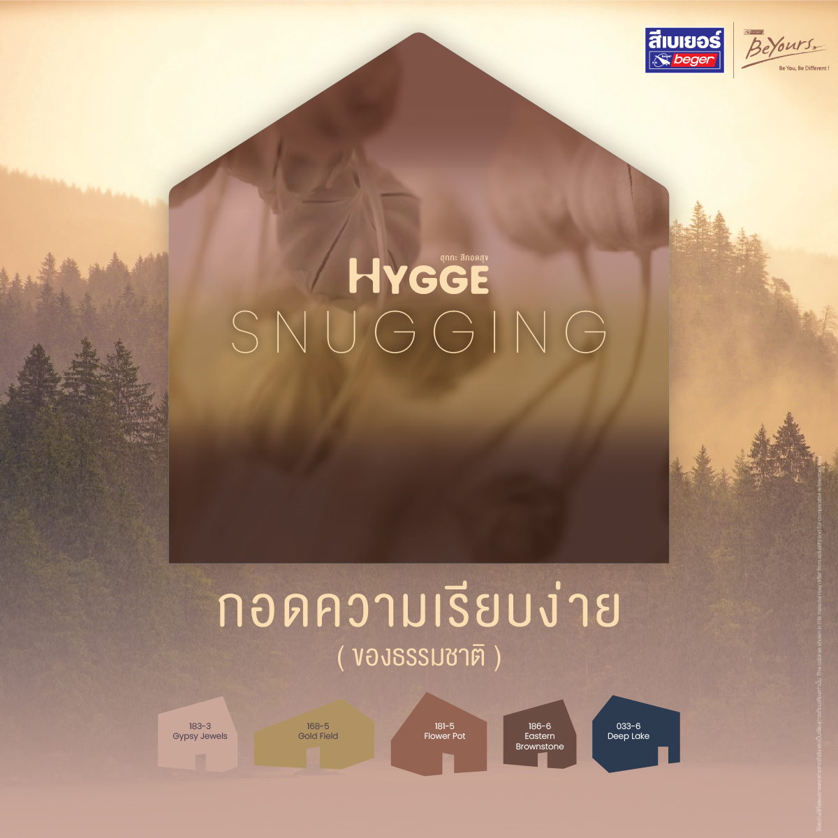 • ✶ Snugging: เฉดสีโอบกอดอันนุ่มนวล มอบความรู้สึกอบอุ่น เรียบง่าย และคงคุณค่าเหนือกาลเวลา