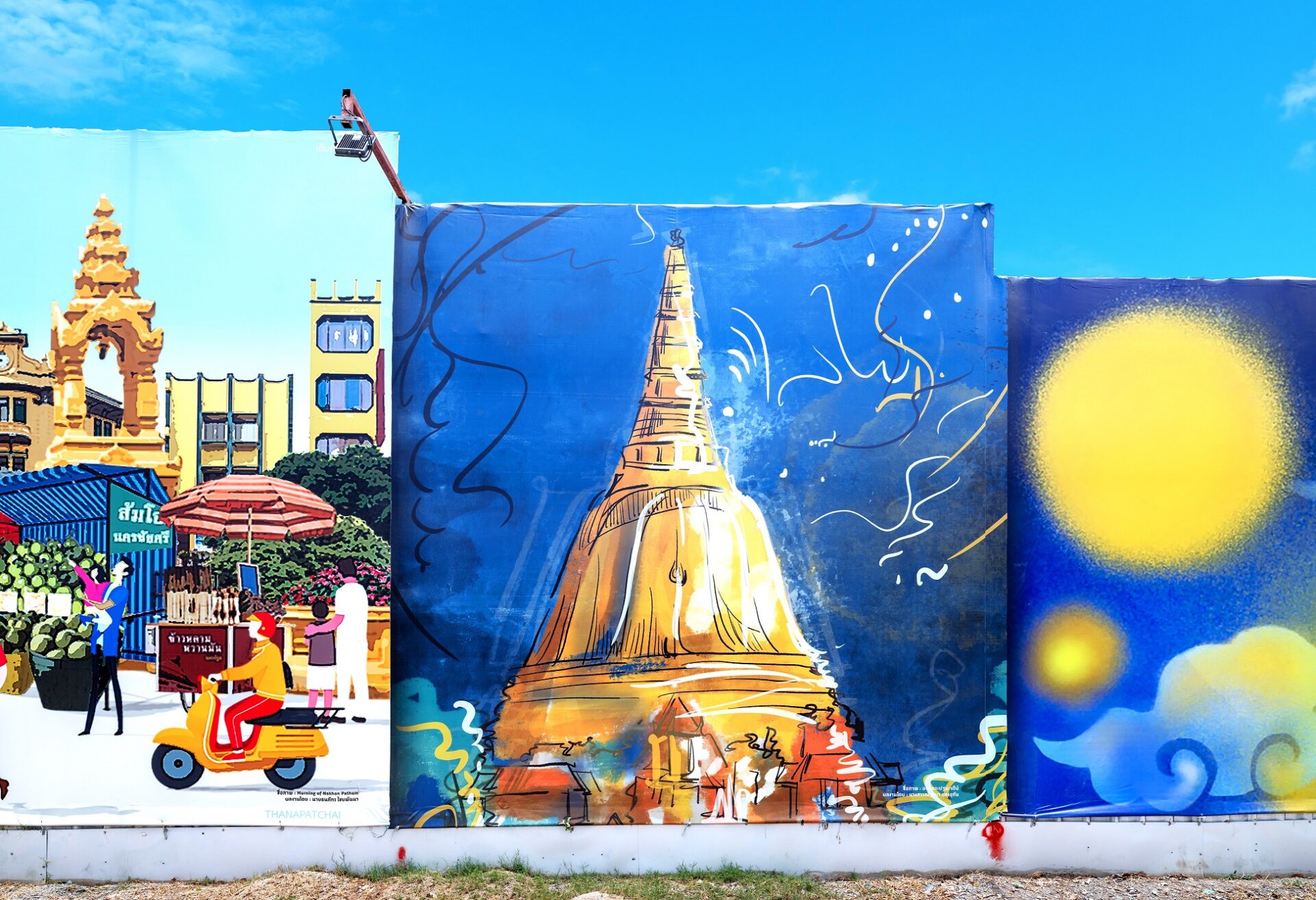 โดย “เซ็นทรัล นครปฐม” ได้ร่วมกับ มหาวิทยาลัยศิลปากร เชิญชวนนักศึกษาร่วมเป็นส่วนหนึ่งในการยกระดับและดึงศักยภาพของจังหวัดนครปฐมให้โดดเด่นในทุกๆ ด้าน พร้อมมุ่งมั่นเป็นศูนย์กลางการใช้ชีวิตที่ครบวงจรของผู้คนในจังหวัด โดยให้ความสำคัญอย่างยิ่งในด้านความยั่งยืนและความร่วมมือกับพลังของคนรุ่นใหม่ แสดงผลงานภาพวาดจิตรกรรม สร้างสรรค์โครงการผลงานศิลปะประดับแนวรั้วโครงการเซ็นทรัล นครปฐมในครั้งนี้ เพื่อเชิดชูประวัติศาสตร์และอัตลักษณ์ของเมืองนครปฐมอันยาวนาน ผสมผสานกับการนำเสนอในรูปแบบร่วมสมัย ทั้งนี้ เพื่อประชาสัมพันธ์ผลงานของนักศึกษาสู่ภาคประชาชนในวงกว้าง และบอกเล่าเรื่องราวความเป็นมาอันสวยงามของจังหวัดนครปฐม