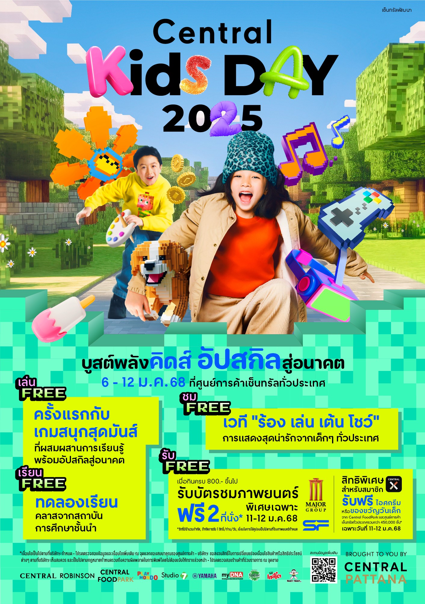 บริษัท เซ็นทรัลพัฒนา จำกัด (มหาชน) และผู้บริหารศูนย์การค้าเซ็นทรัลทั่วประเทศ ผนึกพันธมิตรภาครัฐและเอกชนชั้นนำ ได้แก่ CentralFoodPark, Studio7, Playmondo, Yamaha, MyDNA, นมยูเอชที ว้อนท์ ว้อนท์, โดโซะ, แคมปัส, ปาร์ตี้ และเทสโต เปิดสนามเด็กเล่นสุดล้ำแห่งอนาคต ต้อนรับวันเด็กแห่งชาติ 2568 กับแคมเปญแรกแห่งปี “CENTRAL KIDS DAY 2025 บูสต์พลังคิดส์ อัปสกิลสู่อนาคต” ตอกย้ำการเป็น Family Destination ที่จะพาทุกครอบครัวมาสัมผัสประสบการณ์การเรียนรู้แบบใหม่สุดสนุก พร้อมเปิดโลกจินตนาการให้เด็กไทย Gen Alpha ได้ปลดล็อกพลังแห่งทักษะรอบด้าน ค้นพบศักยภาพทั้ง 6Q* และอัปสกิล Future Heroes ที่ครบทุกมิติ อาทิ Digital (ดิจิทัล), Creative (ความคิดสร้างสรรค์), Financial (การเงิน), Physical (ร่างกาย), Empathy (ความเข้าอกเข้าใจกัน) และ Communication Skills (การสื่อสาร) ระหว่างวันที่ 6-12 มกราคม 2568 ที่ศูนย์การค้าเซ็นทรัลทั่วประเทศ คลิก: https://youtu.be/MlVMlP5gwMU