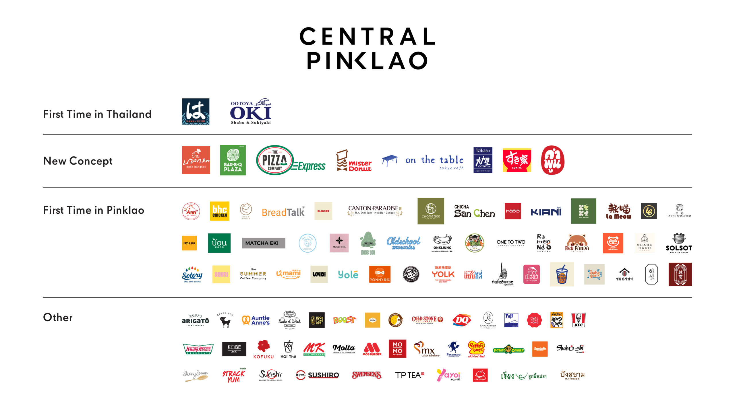 • ร้านดังคอนเซ็ปต์ใหม่ อาทิ Bar B. Q. Plaza, Ootoya Tokusen, On the table, The Pizza Company Express, Mister Donut, คำพูน และ บ้านบางกอก พร้อมเสิร์ฟเมนูเอ็กซ์คลูซีฟที่นี่ที่เดียว