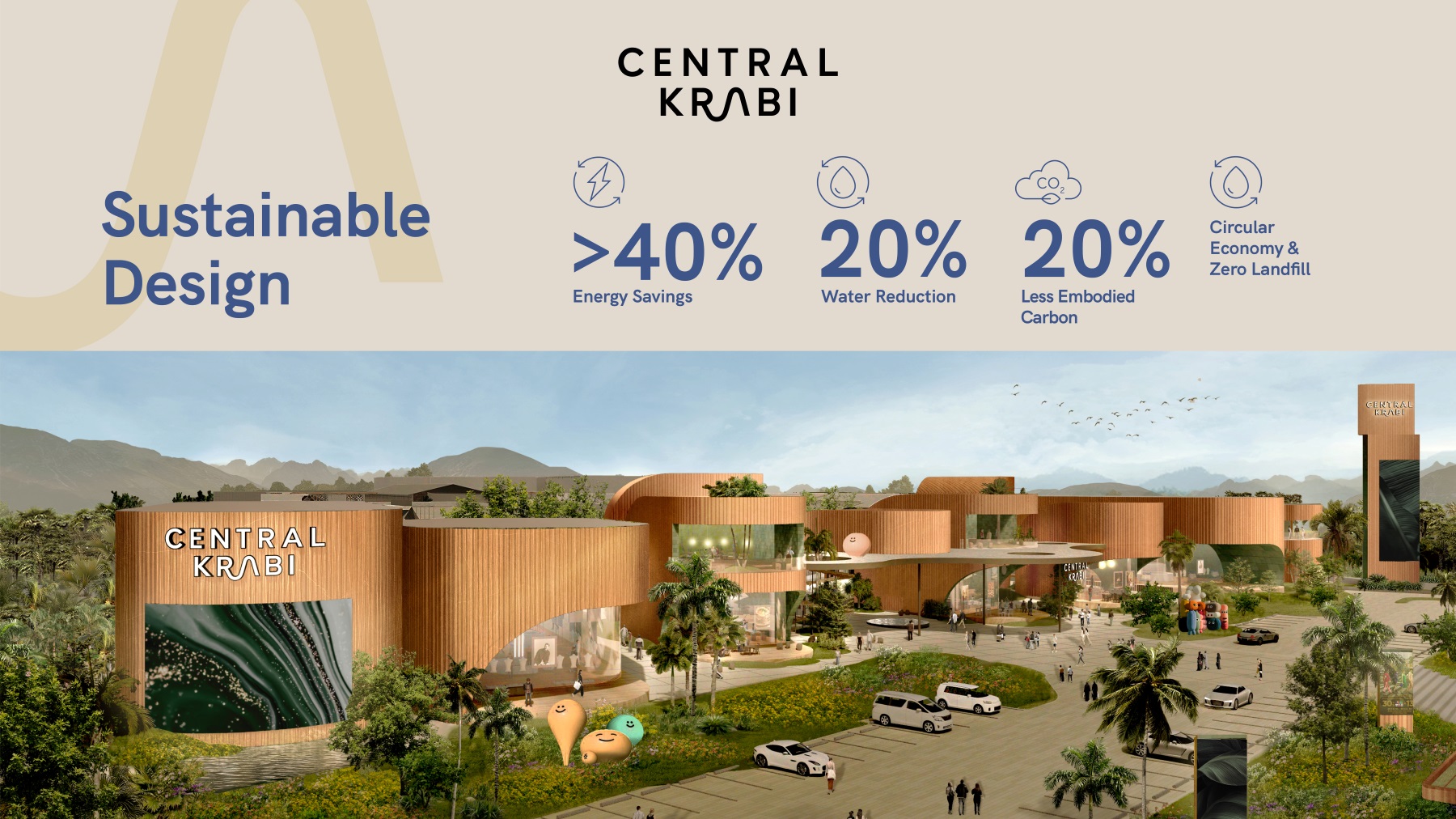 ดร.ณัฐกิตติ์ ตั้งพูลสินธนา กรรมการผู้จัดการใหญ่ สายงานการตลาด บมจ. เซ็นทรัลพัฒนา กล่าวว่า “เซ็นทรัลกระบี่ จะเป็น ศูนย์การค้าแนวคิดความยั่งยืนแห่งแรกของไทย ที่มุ่งสู่การรับรองมาตรฐานสากล EDGE Certification – Zero Level โดยตั้งเป้าลด Carbon Footprint ตั้งแต่กระบวนการก่อสร้าง ซึ่งเป็นเทรนด์การพัฒนาศูนย์การค้าระดับโลกที่รองรับการใช้ชีวิตในอนาคต ทั้งนี้สอดคล้องกับวิสัยทัศน์ ‘Krabi Prototype’ ที่ทุกภาคส่วนร่วมกันผลักดันยกระดับจังหวัดกระบี่ให้เป็น ศูนย์กลางการท่องเที่ยวยั่งยืน (Sustainable Tourism) ที่สามารถทำได้จริงและเที่ยวได้จริง ผนวกกับศักยภาพของจังหวัดกระบี่ ที่โดดเด่นด้วยธรรมชาติอันงดงาม วัฒนธรรม และวิถีชีวิตผู้คนที่หลากหลายเชื้อชาติ ศาสนา ตลอดจนอาหารและศิลปะอันเป็นเอกลักษณ์ ทำให้กระบี่เป็นจุดหมายปลายทางที่แตกต่างและน่าจดจำ พร้อมต้อนรับนักท่องเที่ยวคุณภาพจากทั่วโลก เราจึงพัฒนาโครงการ เซ็นทรัล กระบี่ ให้เดินไปในทิศทางเดียวกัน ภายใต้คอนเซ็ปต์ ‘Made by Krabi’ ที่เปิดพื้นที่ให้ชุมชนมีส่วนร่วมอย่างแท้จริง ถ่ายทอดอัตลักษณ์ท้องถิ่น และสะท้อนความต้องการของคนกระบี่ เพื่อสร้างความภาคภูมิใจร่วมกันและยกระดับเมืองสู่เวทีโลกอย่างยั่งยืน”