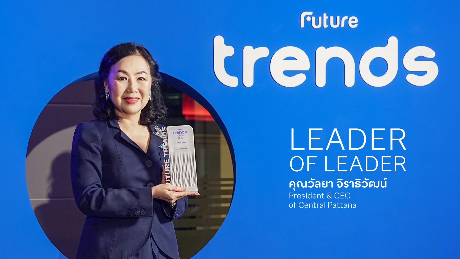 • Leader of Leader Award มอบแก่ นางสาววัลยา จิราธิวัฒน์ CEO หญิงคนแรกของเซ็นทรัลพัฒนา ผู้ขับเคลื่อนองค์กรด้วยกลยุทธ์ Retail-Led Mixed-Use Development พลิกโฉมพื้นที่ศักยภาพทั่วประเทศ สร้างการเติบโตควบคู่ความยั่งยืน และยกระดับมาตรฐานอุตสาหกรรมอสังหาฯ ไทย