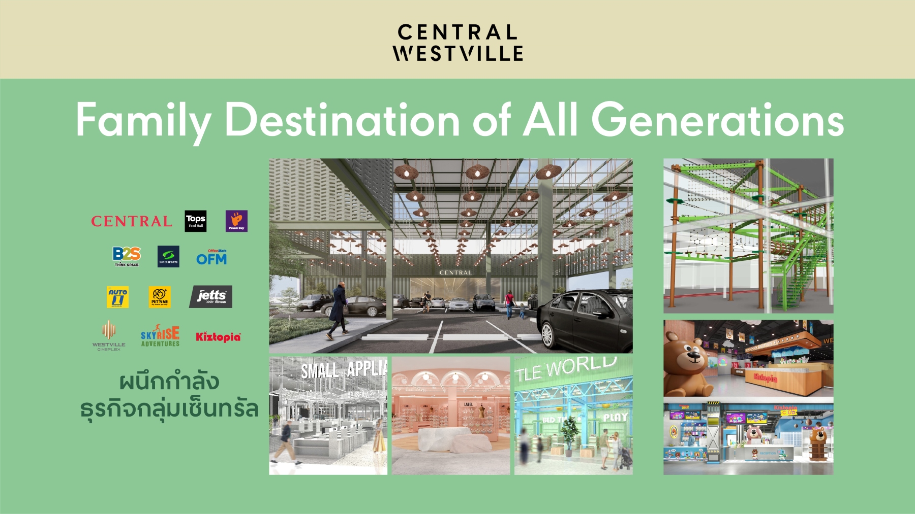 • Family & Edutainment Hub ได้แก่ SkyRise Adventure ผจญภัยบนเส้นเชือกกับ Rope course ที่ใหญ่ที่สุดในไทย, Kiztopia สนามเด็กเล่นในร่มขนาดใหญ่จากสิงคโปร์ ครั้งแรกในไทย และนวัตกรรมใหม่ของโรงภาพยนตร์ Westville Cineplex เหนือจินตนาการแห่งแรกในไทย