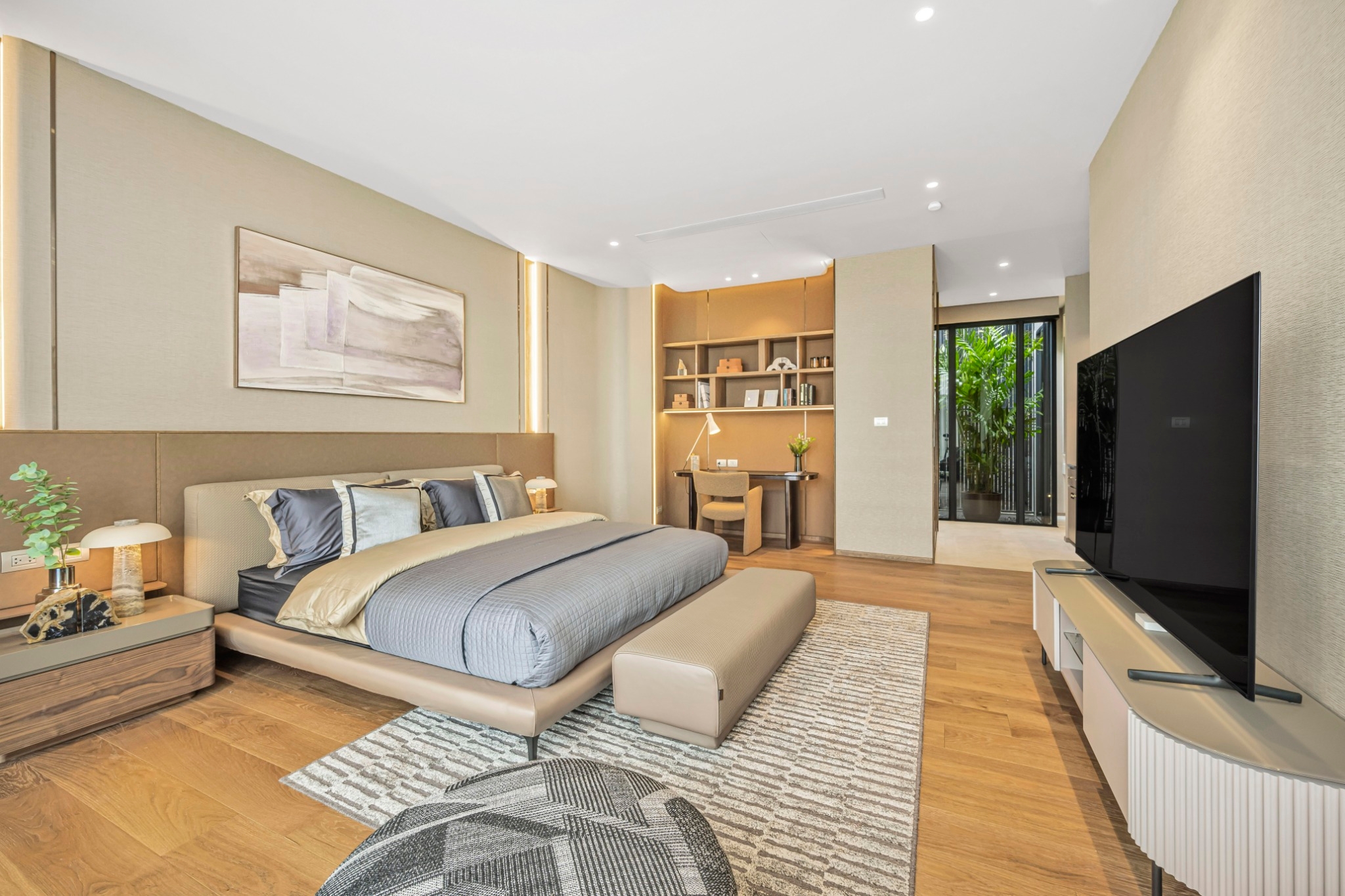 ในส่วนของ Bedroom สำหรับบ้านหลังนี้ประกอบไปด้วย 3 ห้องนอน ที่มาพร้อมกับ Walk in Closet และ Bathroom โดยในส่วนของ Master Bedroom มีการเพิ่มฟังก์ชั่นห้อง Living Area ไว้ในห้องนอน พร้อมกับ Mini Bar ที่ต่อเนื่องกับ Walk in Closet โดยมี Rocket Garden อยู่ระหว่าง Master Bathroom และ Walk in Closet เพื่อเป็นการสร้าง Green Area ให้กับเฉพาะในห้อง Master นี้