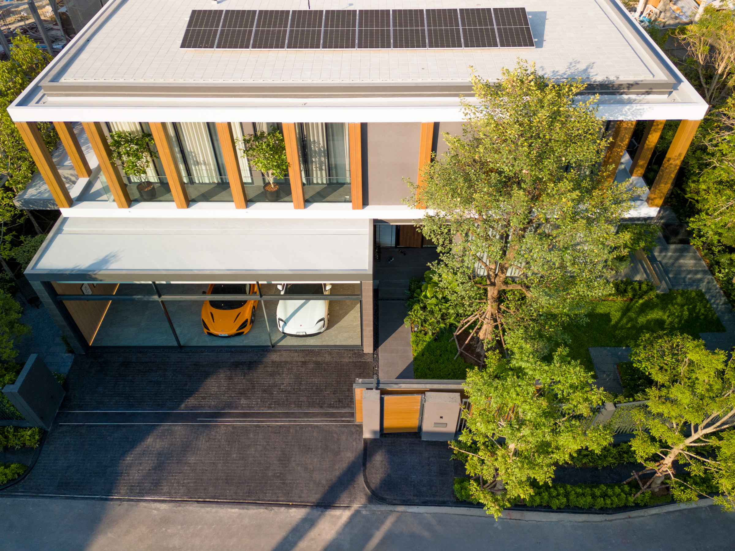 จุดเด่นของงานดีไซน์บ้านหลังนี้คือการนำ Supercar Garage House เข้ามาเป็นไฮไลท์สะท้อนความเป็นตัวตนของเจ้าของบ้าน ที่มีความหลงใหลในรถ Supercar ประกอบกับไลฟ์สไตล์ส่วนตัวที่รักความสนุกสนาน ชอบทำกิจกรรมงานอดิเรก สังสรรค์ปาร์ตี้ ภายในครอบครัว และกับเพื่อนฝูงที่แวะมาเยี่ยมเยียน ได้รับความสุขจากการชื่นชมรถที่รักจากมุมของ Garage House ผสมผสานความสนุกสนานด้วย Space ฟังก์ชั่นที่ใช้งานได้จริง เชื่อมต่อ Living Area และ Pantry Area เข้าไว้ด้วยกันอย่างต่อเนื่อง ให้เป็นจุดศูนย์รวม ของมุมนั่งเล่น มุมพบปะสังสรรค์ มีความโปร่งโล่งสบาย มี Open Space ขนาดใหญ่ที่เหมาะสมกับการรองรับการจัดปาร์ตี้ และรับประทานอาหารร่วมกัน