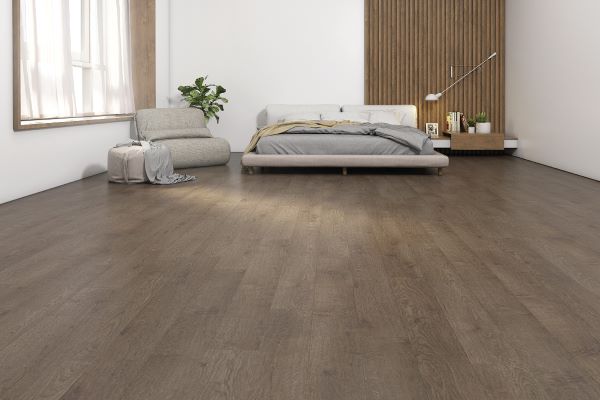 1. ดีไซน์ดาร์ค วอลนัท ที่มาในสไตล์ความสวยเงียบอบอุ่นของลายไม้สีน้ำตาลเข้ม ให้รู้สึกถึงความปลอดภัยและความอบอุ่น ด้วยโครงสร้างของพื้น Peel & Place ที่มีวัสดุซับเสียงอยู่ด้านล่างทำให้ไม่เกิดเสียงดังจากการเดิน ช่วยสร้างความเงียบในห้องนอน ทำให้ผู้ที่นอนยากสามารถหลับได้อย่างมีความสุข
