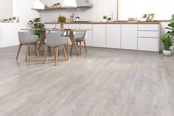 2. ดีไซน์ซิลเวอร์ โอ๊ค ที่ดูสวยสะอาดปลอดภัยด้วย ลายไม้โทนสีเทาอ่อน ทำให้ห้องครัวดูสะอาด เห็นคราบสกปรกได้ง่าย จึงทำความสะอาดได้ทันที ด้วยโครงสร้างของพื้น Peel & Place เป็นวัสดุทนน้ำ ช่วยกันลื่นแม้เปียกน้ำ ไม่ลามไฟ ไม่เก็บสิ่งสกปรกบนพื้นผิว จึงเหมาะกับพื้นที่ทำครัวที่จะต้องเจอทั้งน้ำและไฟ