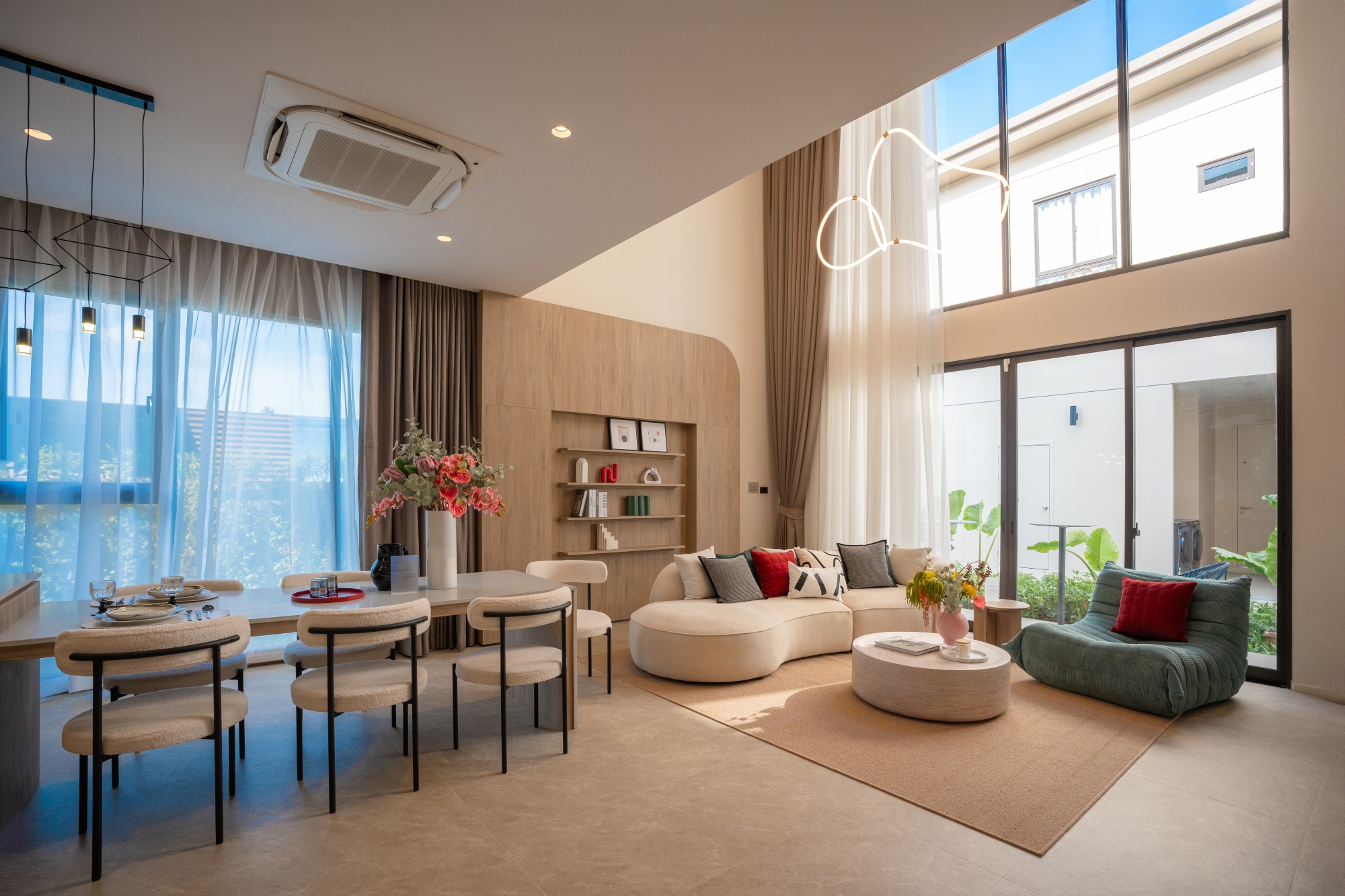 การออกแบบดีไซน์แสดงออกถึงความเป็นธรรมชาติของโครงการที่มีจุดเด่น คือ เพดานบ้านสูง (Double Volume) 6.6 เมตร บริเวณ Living Area ทุกหลัง อากาศหมุนเวียน ถ่ายเทสะดวก ให้ความรู้สึกปลอดโปร่ง โล่งสบาย กว้างขวาง สว่าง สง่างาม และโดดเด่น โถสุขภัณฑ์แบบ Smart Toilet ที่จอดรถกว้างสามารถจอดได้สะดวก อ่างอาบนํ้าในห้องนอน Master Bedroom รับประกันโครงสร้างบ้าน 10 ปี* เป็นโครงการแรก ครอบคลุมทั้งเรื่องโครงสร้างอาคาร การรั่วซึมของหลังคา การรั่วซึมของระบบท่อและไฟฟ้า การใช้งานของประตูและหน้าตา