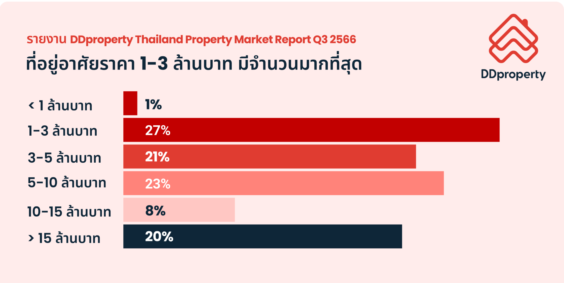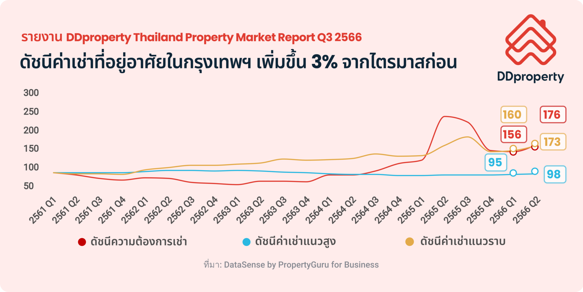 รายงาน DDproperty Thailand Property Market Report Q3 2566 ซึ่งวิเคราะห์จากข้อมูลประกาศขาย-เช่าอสังหาฯ บนเว็บไซต์ DDproperty เผยข้อมูลเชิงลึกของตลาดอสังหาฯ ไทยในไตรมาสล่าสุด พร้อมสรุปภาพรวมดัชนีราคา และความต้องการที่อยู่อาศัยทั้งในตลาดซื้อและเช่า รวมทั้งอัปเดตทำเลศักยภาพที่ดัชนีราคาและดัชนีค่าเช่ามีแนวโน้มเติบโตอย่างน่าสนใจ