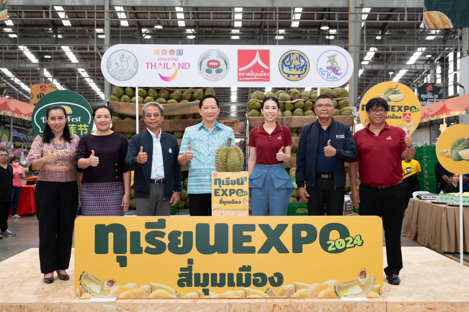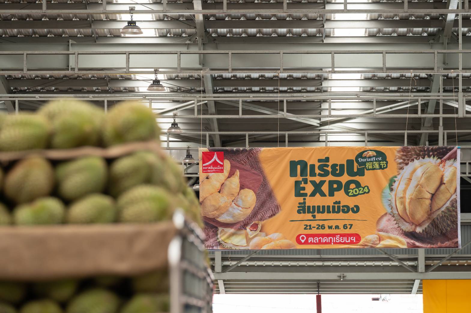 ตลาดสี่มุมเมือง อาณาจักรค้าส่ง-ปลีกผลไม้ใกล้กรุงเทพฯ จัดพิธีเปิดงาน “ทุเรียน Expo สี่มุมเมือง 2024” อย่างยิ่งใหญ่ ซึ่งจัดขึ้นตั้งแต่วันที่ 21-26 พฤษภาคม 2567 นี้ บริเวณตลาดทุเรียนสี่มุมเมือง โดยได้รับเกียรติจาก คุณภาสกร บุญญลักษม์ ผู้ว่าราชการจังหวัดปทุมธานี เป็นประธานในพิธีเปิดงาน โดยมี คุณปณาลี ภัทรประสิทธิ์ ผู้ช่วยกรรมการผู้จัดการ ตลาดสี่มุมเมือง ให้การต้อนรับ ในงานยังมีคุณชาญยุทธ เศวตสุวรรณ ผู้อำนวยการการท่องเที่ยวแห่งประเทศไทย (ททท.) สำนักงานกรุงเทพมหานคร ร่วมด้วยประชาสัมพันธ์จังหวัด เกษตรจังหวัด พาณิชย์จังหวัด และแขกผู้มีเกียรติเข้าร่วมงาน เมื่อวันที่ 21 พฤษภาคม 2567