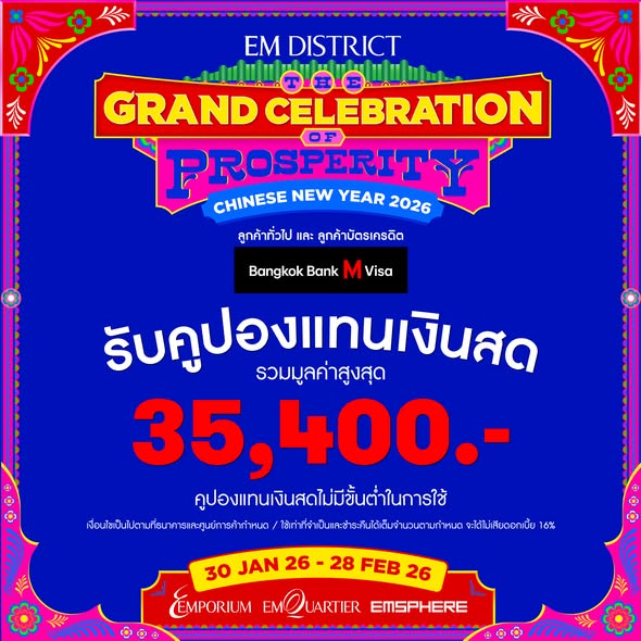 EM DISTRICT (เอ็มโพเรียม เอ็มควอเทียร์ และ เอ็มสเฟียร์) จับมือบัตรเครดิต Bangkok Bank M Visa และพันธมิตรธุรกิจ เปิดตลาดปี 2569 จัดแคมเปญ EM DISTRICT EDGE OF LUXE และ EM DISTRICT EDGE OF FLAVOUR กระตุ้นการจับจ่ายลูกค้า ตั้งแต่ 9 มกราคม 2569 – 29 มกราคม 2569 ที่ เอ็ม ดิสทริค เริ่มจากความพิเศษสำหรับนักช้อปในแคมเปญ EM DISTRICT EDGE OF LUXE เมื่อช้อปปิ้งร้านค้าแฟชั่น ไลฟ์สไตล์ชั้นนำทั้ง 3 ศูนย์การค้าฯ ผ่านบัตรเครดิต Bangkok Bank M Visa ตามเงื่อนไข [...]