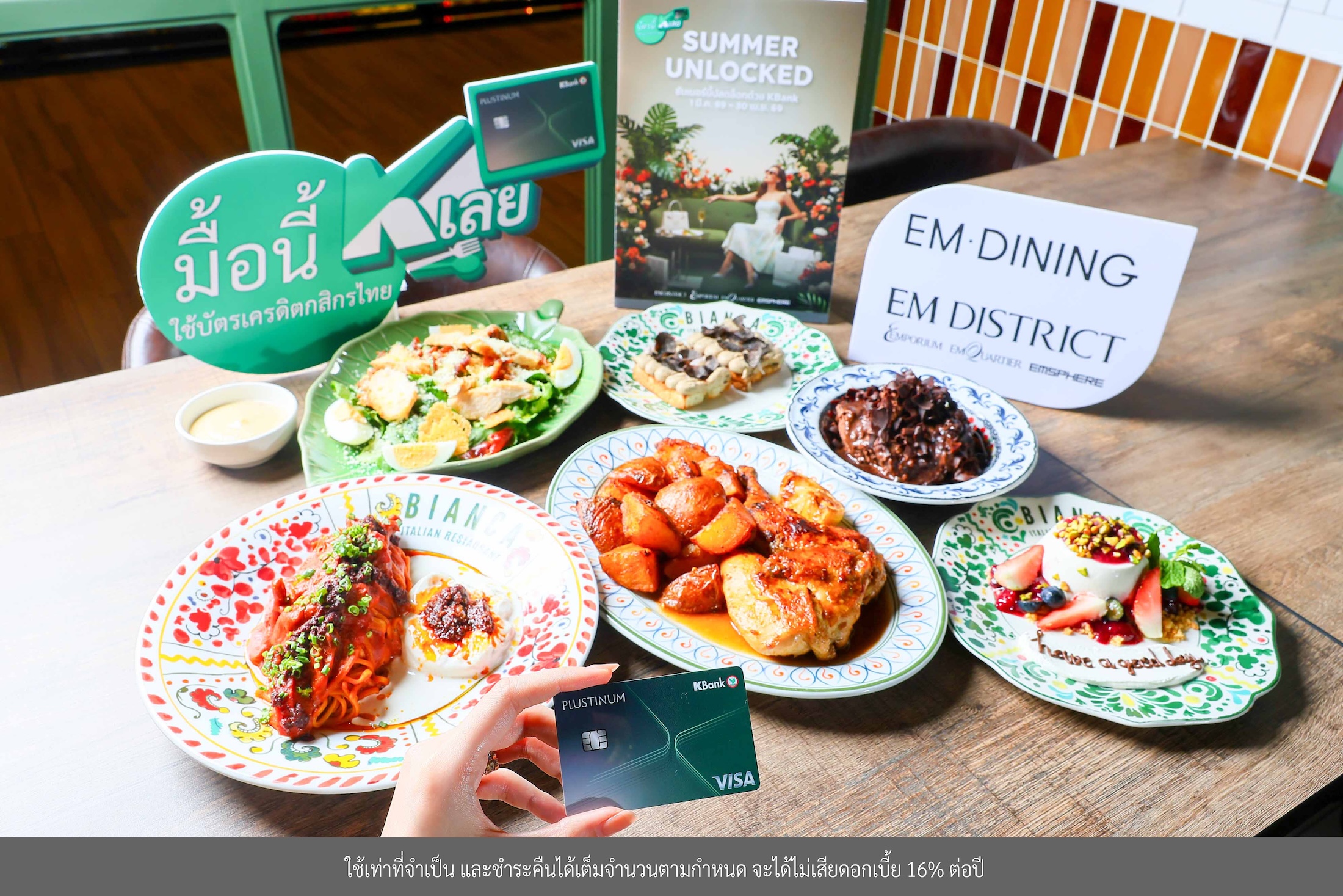 นายพิพัฒน์ เหล่าพิพัฒนา ผู้อำนวยการฝ่าย Credit Card Product and Marketing Management Department กล่าวว่า “บัตรเครดิตกสิกรไทย พร้อมเติมสีสันให้การใช้จ่ายซัมเมอร์นี้ผ่านแคมเปญ ‘SUMMER UNLOCKED’ ที่ร่วมมือกับ เอ็ม ดิสทริค มอบดีลพิเศษที่สร้างความคุ้มค่าแบบต่อยอด ทั้งคูปองแทนเงินสดสูงสุด 14,000 บาท และโปรโมชันไฮไลท์ ‘ช้อป 1,000 รับ 1,000’ โดยลูกค้าสามารถนำคูปองไปใช้จ่ายต่อได้ทันที ทั้งการช้อปปิ้งและมื้ออาหาร พร้อมรับเมนูพิเศษ และสิทธิพิเศษมากมายจาก 35 ร้านอาหารชั้นนำในเอ็ม ดิสทริค เป็นการมอบสิทธิประโยชน์ที่เชื่อมโยงกับไลฟ์สไตล์การใช้จ่ายของลูกค้า และทำให้บัตรเครดิตกสิกรไทยเป็นบัตรหลักที่ลูกค้าใช้เป็นประจำทุกวันในทุกไลฟ์สไตล์”