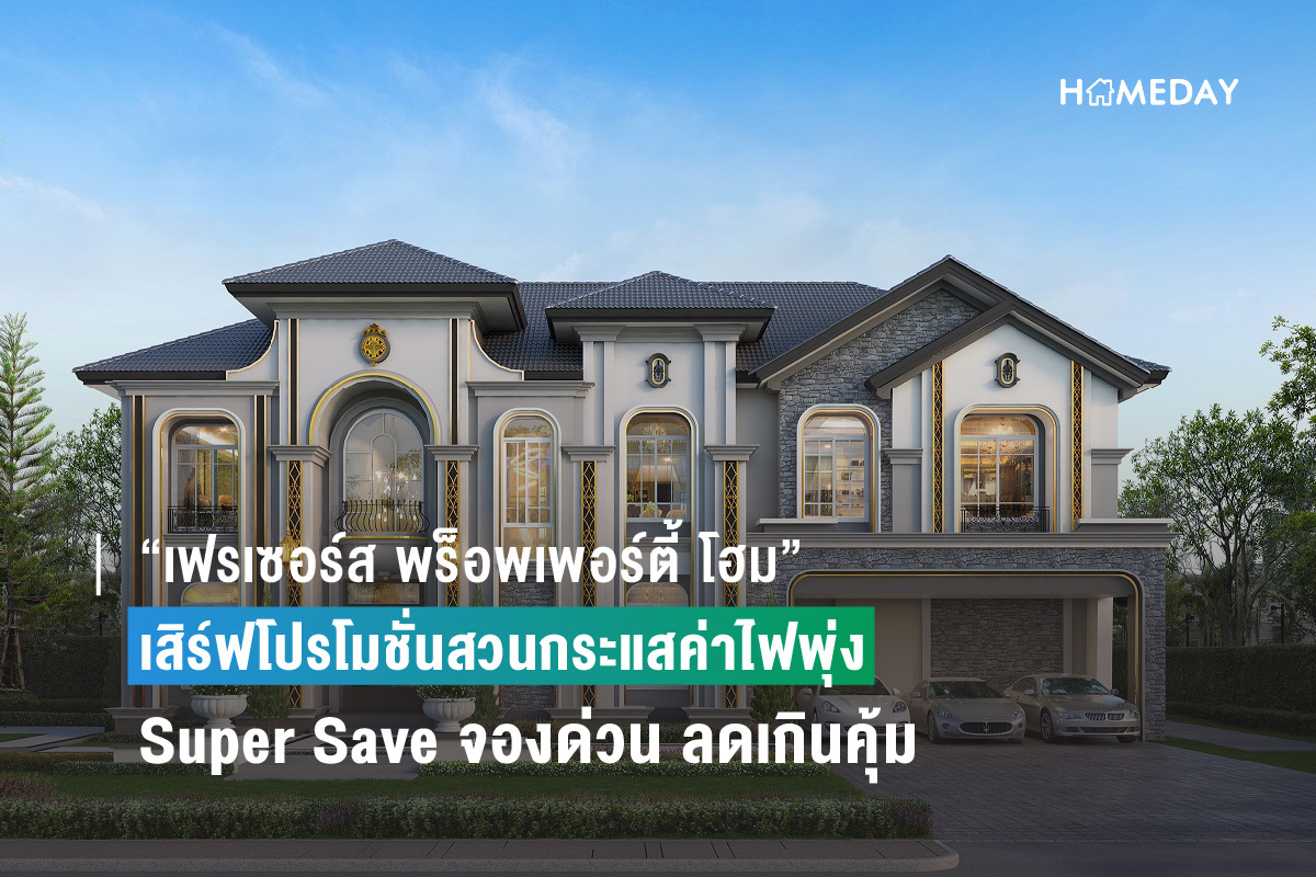 บริษัท เฟรเซอร์ส พร็อพเพอร์ตี้ โฮม (ประเทศไทย) จำกัด หรือ FPH เปิดเผยว่า บริษัทฯ ได้จัดโปรโมชั่นสุดพิเศษเพื่อเป็นการลดค่าใช้จ่ายให้กับลูกค้า กับ “Super Save จองด่วน!!…. มาตรการลดเกินคุ้ม” สำหรับลูกค้าที่สนใจจองโครงการบ้านหรู และบ้านเดี่ยว ทั้งโครงการพร้อมอยู่และโครงการใหม่ หลากหลายแบรนด์ โดยมอบสิทธิพิเศษกับส่วนลดสูงสุดถึง 5,000,000 บาท* และเพื่อลดการใช้พลังงานอย่างยั่งยืนด้วยพลังงานสะอาด ยังมอบความพิเศษเพิ่มเติมกับแพคเกจ SOLAR ROOF มูลค่าสูงสุด 450,000 บาท* เพียงจองในวันที่ 20 – 21 พฤษภาคมนี้ เท่านั้น