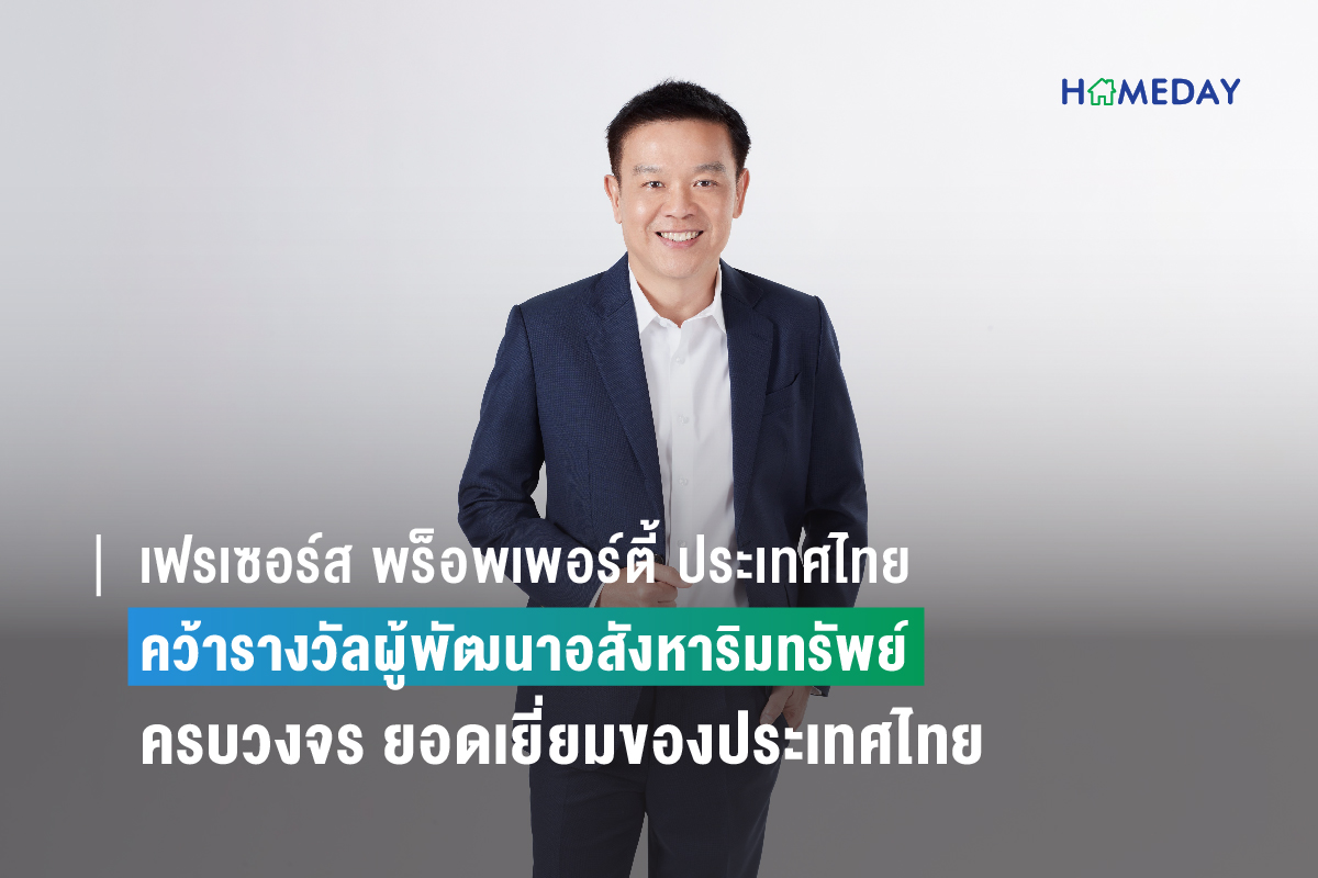 นายเมลวิน เหลียง ผู้อำนวยการอาวุโส บริษัท ฟรอสต์ แอนด์ ซัลลิแวน กล่าวว่า “เฟรเซอร์ส พร็อพเพอร์ตี้ ประเทศไทย มีความโดดเด่นในการสร้างแพลตฟอร์มอสังหาริมทรัพย์ครบวงจรให้เติบโตอย่างมั่นคง โดยได้สร้างมาตรฐานใหม่ของการพัฒนาที่อยู่อาศัย โรงงาน-คลังสินค้า อาคารสำนักงานและพื้นที่รีเทล ควบคู่ไปกับบริการที่ยอดเยี่ยม รวมถึงให้ความสำคัญ