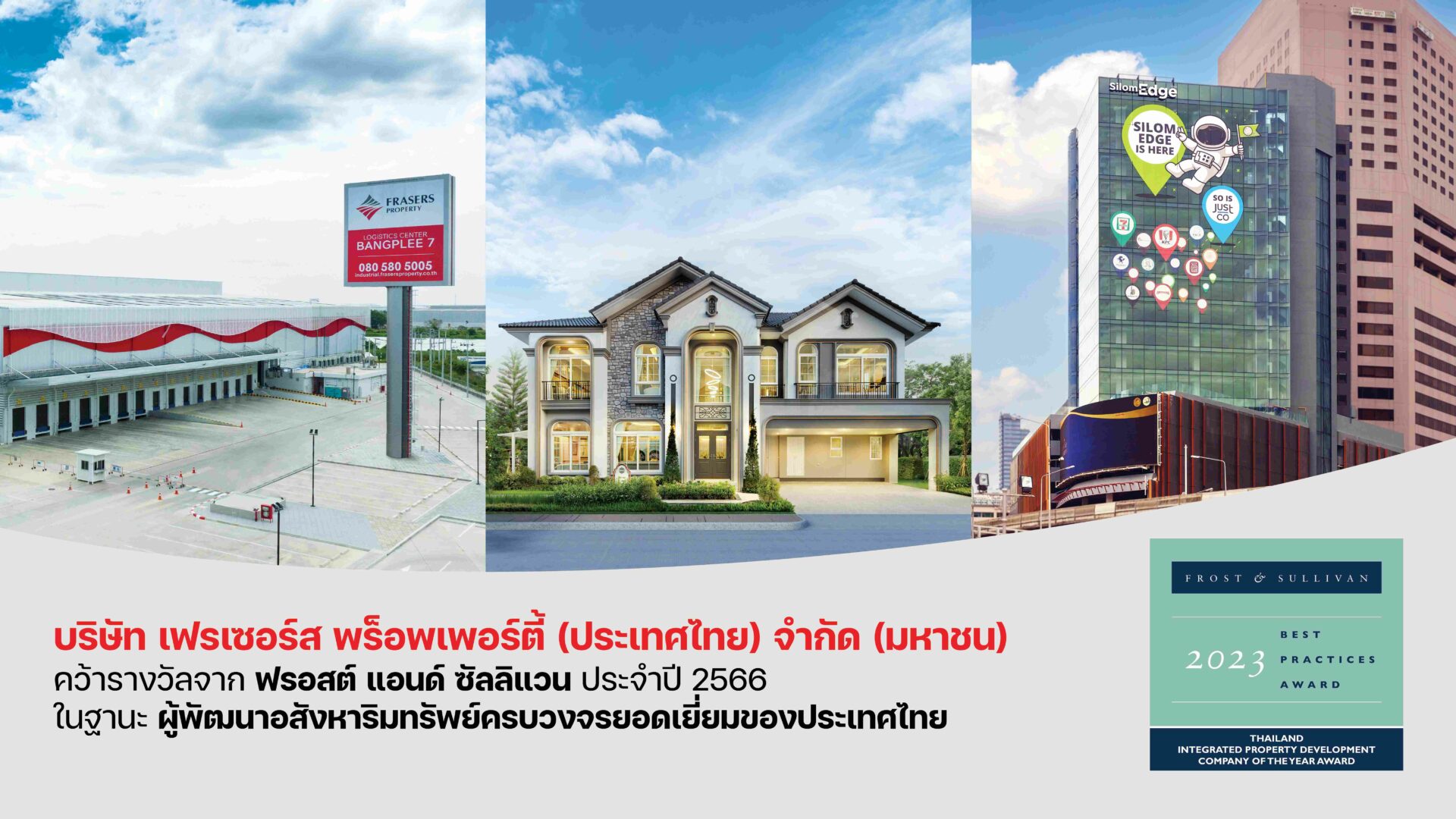 บริษัท เฟรเซอร์ส พร็อพเพอร์ตี้ (ประเทศไทย) จำกัด (มหาชน) หรือ “FPT” ผู้นำอสังหาริมทรัพย์ครบวงจรรายแรกของประเทศไทย ประกาศความสำเร็จล่าสุด ด้วยการคว้ารางวัลบริษัทยอดเยี่ยม ประจำปี พ.ศ.2566 ในฐานะผู้พัฒนาอสังหาริมทรัพย์ครบวงจรยอดเยี่ยมของประเทศไทย (Thailand Integrated Property Development) จาก ฟรอสต์ แอนด์ ซัลลิแวน องค์กรที่ปรึกษาทางธุรกิจและวิจัยระดับโลก ซึ่งประเมินบริษัทชั้นนำจากทั่วโลก เพื่อเฟ้นหาบริษัทที่มีความโดดเด่นในระดับสากล ทั้งด้านการดำเนินธุรกิจ การสร้างผลประกอบการ การวางกลยุทธ์เพื่อสร้างการเติบโตขององค์กร การส่งมอบประสบการณ์ที่ดีให้กับลูกค้า การประยุกต์ใช้นวัตกรรม และการสร้างแบรนด์อย่างยั่งยืน