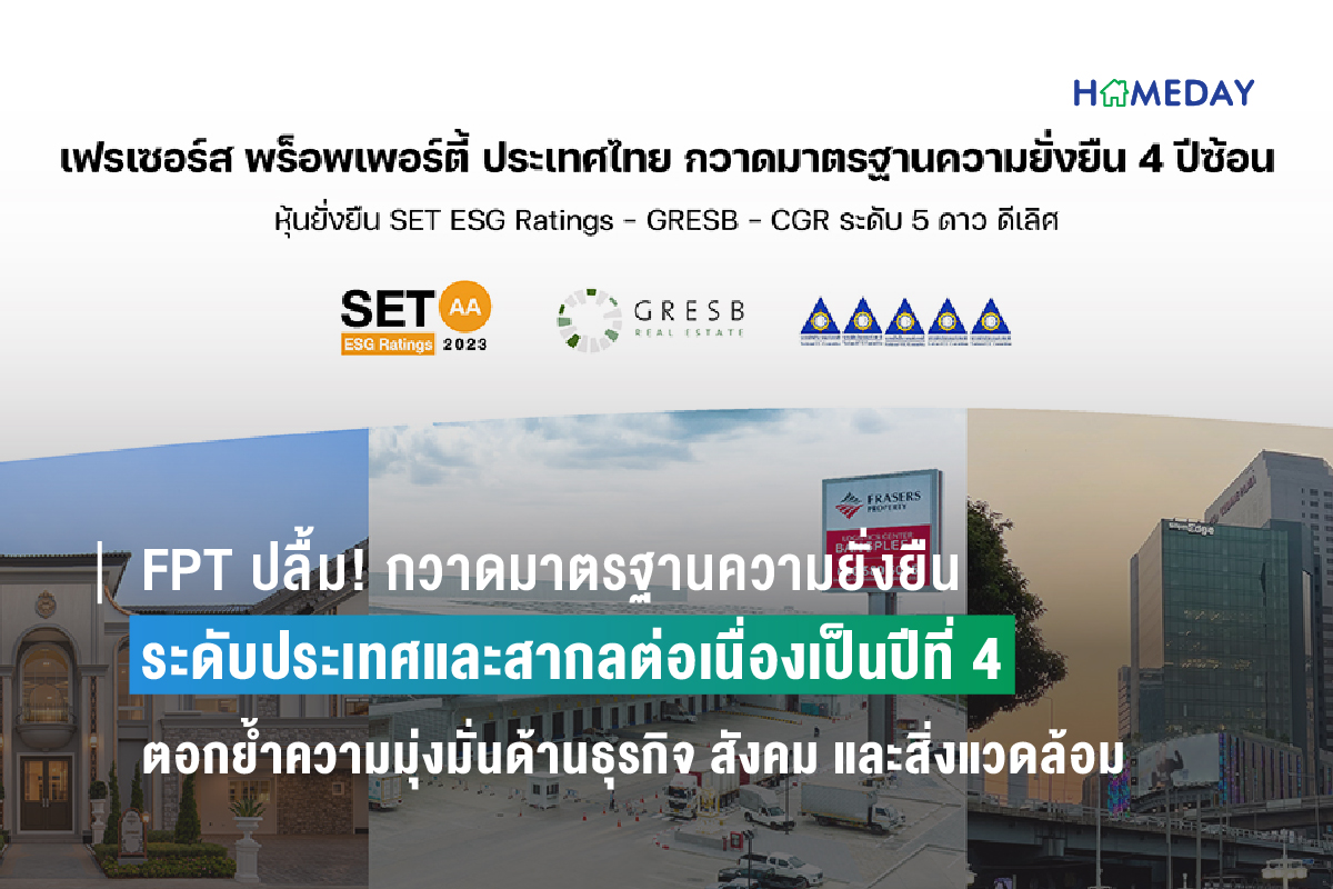 บริษัท เฟรเซอร์ส พร็อพเพอร์ตี้ (ประเทศไทย) จำกัด (มหาชน) หรือ “FPT” ผู้นำอสังหาริมทรัพย์ครบวงจรรายแรกของประเทศไทยประเมินตลาดอสังหาริมทรัพย์ไทยยังมีแรงบวก แต่ต้องระวังปัจจัยเสี่ยงจากใน-นอกประเทศ เชื่อมั่นพอร์ตโฟลิโอแข็งแกร่ง รุกสร้างการเติบโตผ่านการเป็น Real Estate as a Service Brand ตามโรดแมป FPT Ne