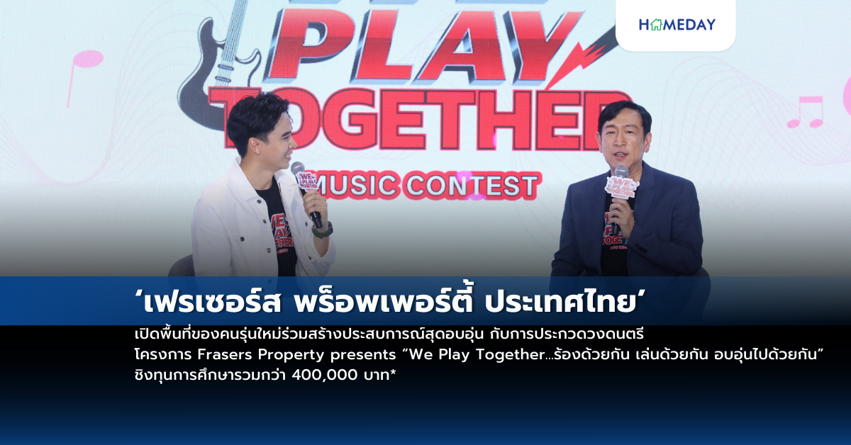 โครงการ Frasers Property presents “We Play Together…ร้องด้วยกัน เล่นด้วยกัน อบอุ่นไปด้วยกัน” เป็นโครงการประกวดวงดนตรีสำหรับเยาวชนคนรุ่นใหม่ที่มีใจรักในเสียงดนตรี ซึ่งจัดขึ้นเป็นครั้งแรกเพื่อเปิดโอกาสให้น้อง ๆ ได้ร่วมแสดงความสามารถทางด้านดนตรีผ่านเสียงเพลงในแบบของคุณ พร้อมชิงทุนการศึกษามูลค่ารวมกว่า 400,000 บาท* และโอกาสในการร่วมประสบการณ์สุดพิเศษกับศิลปินชั้นนำของเมืองไทย โดยจะแบ่งการประกวดออกเป็น 2 รุ่น ได้แก่ รุ่น High School Class – มัธยมศึกษาตอนปลาย หรือเทียบเท่า และรุ่น University Class – มหาวิทยาลัย / อุดมศึกษา หรือเทียบเท่า ซึ่งเปิดรับสมัครอย่างเป็นทางการแล้ววันนี้ถึง 15 กุมภาพันธ์ 2568 เท่านั้น โดยจะประกาศผลผู้ที่ผ่านเข้ารอบ Audition จำนวน 20 วง (รุ่นละ 10 วง) ในวันที่ 27 กุมภาพันธ์ 2568 เพื่อทำการแสดงต่อหน้าคณะกรรมการผู้คร่ำวอดในแวดวงดนตรีระดับประเทศที่ให้เกียรติมาร่วมตัดสินในโครงการนี้ อาทิ คุณหนึ่ง – จักรวาล เสาธงยุติธรรม, คุณแมว – จิรศักดิ์ ปานพุ่ม, คุณฮอล – ชัชชนท อาภาสโชคทวี และ ผู้เชี่ยวชาญจากกองดุริยางค์ทหารอากาศ หน่วยบัญชาการอากาศโยธิน ในวันที่ 8 มีนาคมนี้ และรอบ Final กำหนดจัดขึ้นในวันที่ 29 มีนาคมนี้ ณ สามย่านมิตรทาวน์ฮอลล์ โดยอีกหนึ่งความพิเศษที่ทางโครงการประกวดฯ เตรียมไว้ในครั้งนี้ คือการนำ 3 ศิลปินชั้นนำของเมืองไทย ได้แก่ คุณคัตโตะ นักร้องนำจากวงลิปตา, คุณมีน มือกีต้าร์จากวงไททศมิตร และ คุณเอก นักร้องนำจากวง Season Five มาร่วมให้คำแนะนำ และเทคนิคต่าง ๆ จากประสบการณ์จริง เพื่อให้น้องๆ สามารถนำไปปรับใช้ในการแสดงดนตรี ทั้งด้านการร้องเพลงและการเล่นเครื่องดนตรี ซึ่งมั่นใจว่าน้อง ๆ ทั้ง 10 ทีมสุดท้าย (รุ่นละ 5 ทีม) ที่ผ่านเข้าสู่รอบชิงชนะเลิศจะได้สัมผัสกับประสบการณ์สุดพิเศษ และได้รับความรู้กลับไปอย่างเต็มที่อย่างแน่นอน