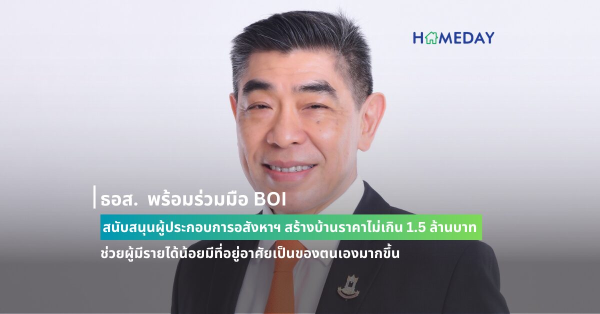 ธนาคารอาคารสงเคราะห์ (ธอส.) ขานรับนโยบายรัฐบาลในการช่วยลดความเหลื่อมล้ำทางสังคม ผ่านการมีที่อยู่อาศัยเป็นของตนเองตามความเหมาะสม โดยความร่วมมือกับสำนักงานคณะกรรมการส่งเสริมการลงทุน (BOI) ดำเนินโครงการส่งเสริมการลงทุน “กิจการที่อยู่อาศัยสำหรับผู้มีรายได้น้อย” สนับสนุนผู้ประกอบการอสังหาริมทรัพย์สร้างที่อยู่อาศัยราคาไม่เกิน 1.5 ล้านบาท พร้อมเปิดระบบบนเว็บไซต์ธนาคาร ช่วยพิจารณาคุณสมบัติ ก่อนเสนอรายชื่อให้รับสิทธิประโยชน์ทางภาษีจาก BOI ผู้ที่สนใจสามารถเข้าร่วมโครงการได้ทาง www.ghbank.co.th ตั้งแต่วันที่ 1 เมษายน 2567 เป็นต้นไป