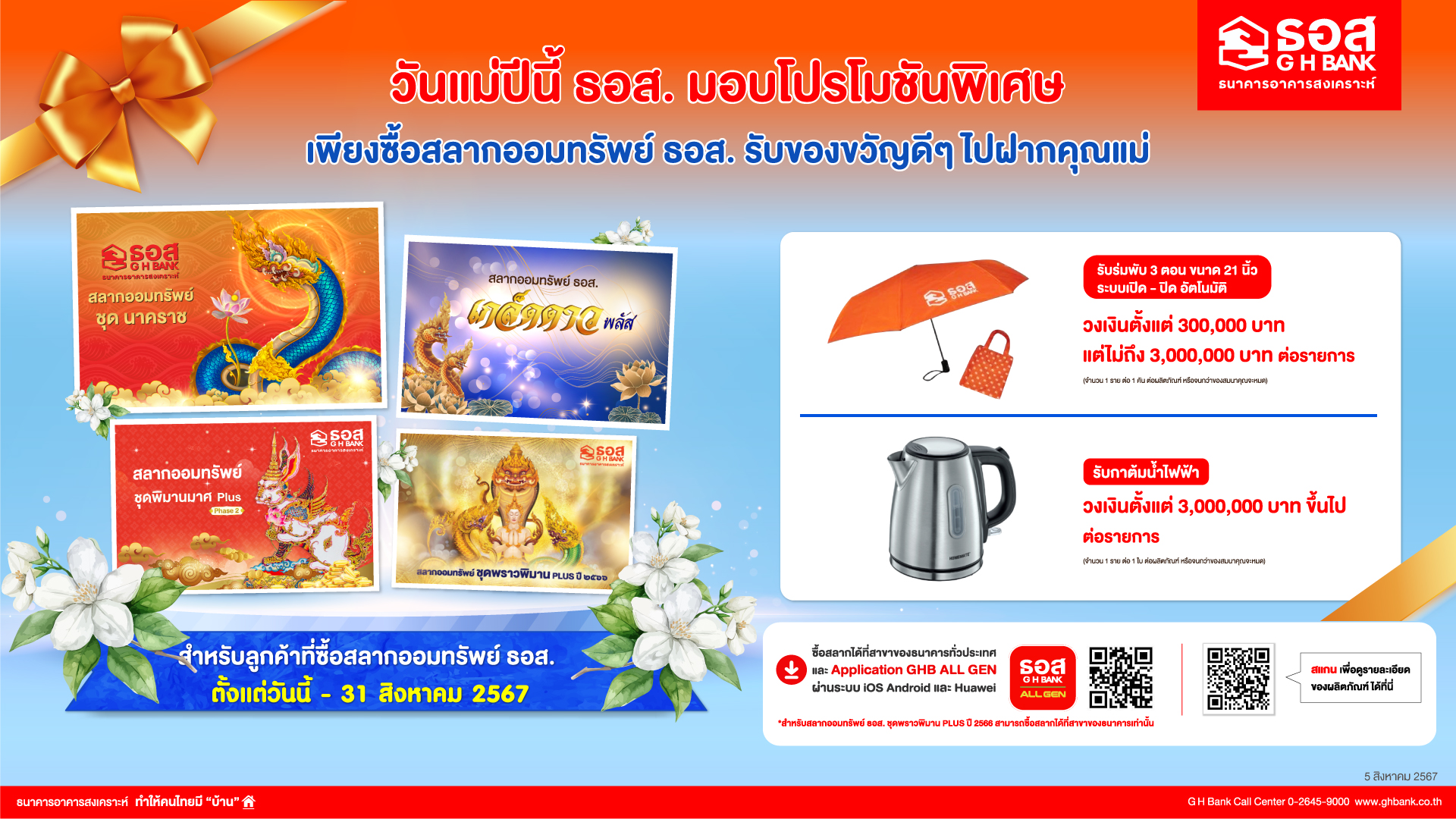 ธนาคารอาคารสงเคราะห์ (ธอส.) ในฐานะสถาบันการเงินของรัฐ ที่มีพันธกิจ “ทำให้คนไทยมีบ้าน” พร้อมสนับสนุนให้คนไทยมีที่อยู่อาศัยเป็นของตนเองมากขึ้น ด้วยการจัดโปรโมชันพิเศษร่วมงาน “มหกรรมการเงินโคราช ครั้งที่ 18 Money Expo 2024 Korat” ระหว่างวันที่ 9-11 สิงหาคม 2567 เพื่อเพิ่มโอกาสให้พี่น้องชาวอีสาน ได้เข้