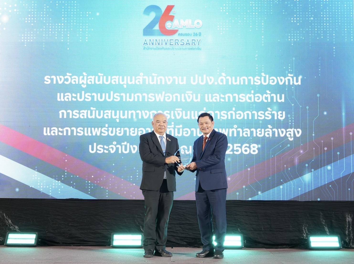 โดยไม่คิดค่าใช้จ่ายมาอย่างต่อเนื่องตั้งแต่ปี 2563 ถึงปัจจุบัน โดยสำนักงาน ปปง. ได้มอบโล่รางวัลแก่ผู้สนับสนุนการดำเนินงานของสำนักงาน ปปง. ในโอกาสวันคล้ายวันสถาปนาครบรอบ 26 ปี สำนักงาน ปปง. ณ โรงแรมเซ็นจูรี่ พาร์ค