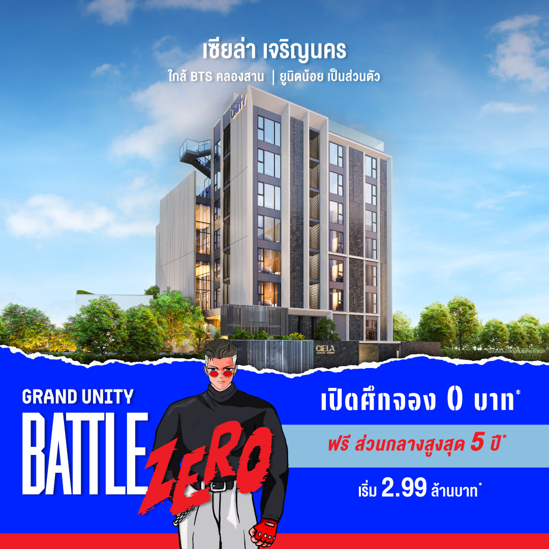 ห้ามพลาด! ข้อเสนอที่ดีที่สุดแห่งปีในงาน “GRAND UNITY BATTLE ZERO – เปิดศึกจอง 0 บาท” ระหว่างวันที่ 18 – 24 กันยายน 2568 เวลา 10.00 – 22.00 น. ณ ชั้น 1 โซน A ศูนย์การค้าเซ็นทรัล ลาดพร้าว สอบถามข้อมูลเพิ่มเติมได้ที่ www.grandunity.co.th, LINE: @GrandUnity หรือโทร. 0 2652 4000