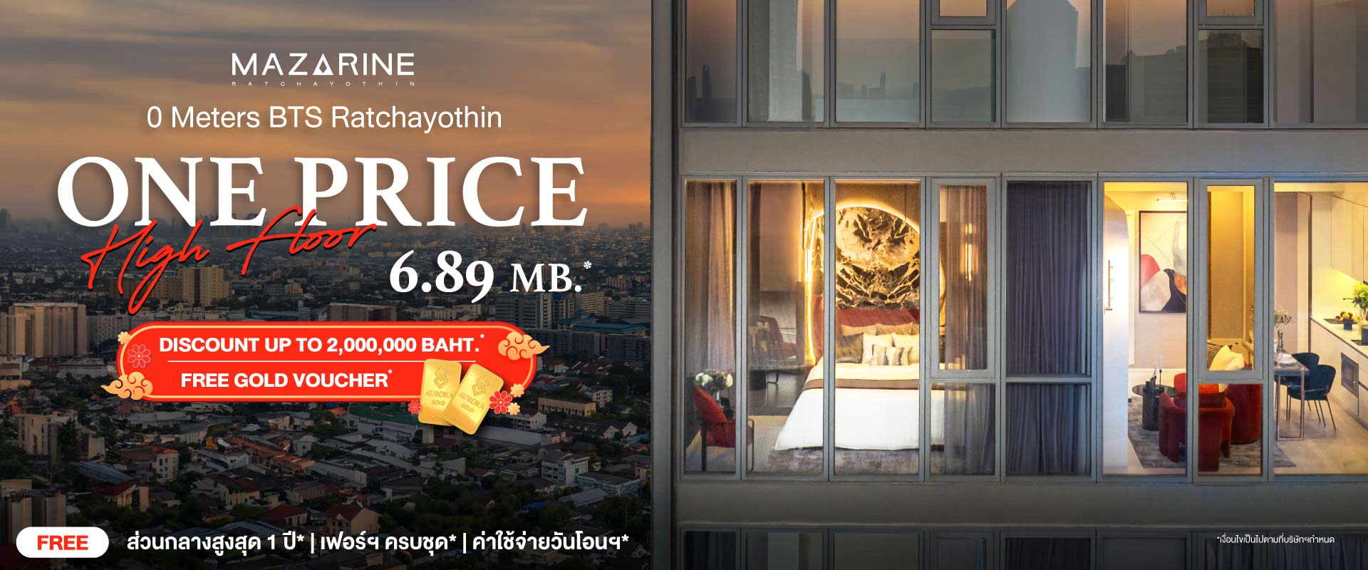 แกรนด์ ยูนิตี้ เผยโฉมห้องตัวอย่างใหม่กับเฟอร์นิเจอร์ดีไซน์โดดเด่น สะท้อนไลฟ์สไตล์ที่มีระดับของคนเมือง กับโครงการ “แมสซารีน รัชโยธิน” คอนโดใหม่พร้อมอยู่ ติด BTS สถานีรัชโยธิน เพียง 0 เมตร สะดวกทุกการเดินทาง มาพร้อมส่วนกลางขนาดใหญ่กว่า 3 ชั้น วิวเมืองแบบพาโนรามา กับห้องแต่งครบ เพดานสูงถึง 3 เมตร ชั้นสูง วิวเมือง ในราคาเริ่มต้นเพียง 6.89 ล้านบาท* พร้อมข้อเสนอสุดพิเศษ ฟรี บัตรกำนัลทองคำ*, ฟรี เฟอร์นิเจอร์ครบชุด*, ฟรี ค่าส่วนกลางสูงสุด 1 ปี* ฟรี ค่าใช้จ่ายวันโอน* และส่วนลดสูงสุดถึง 2 ล้านบาท*