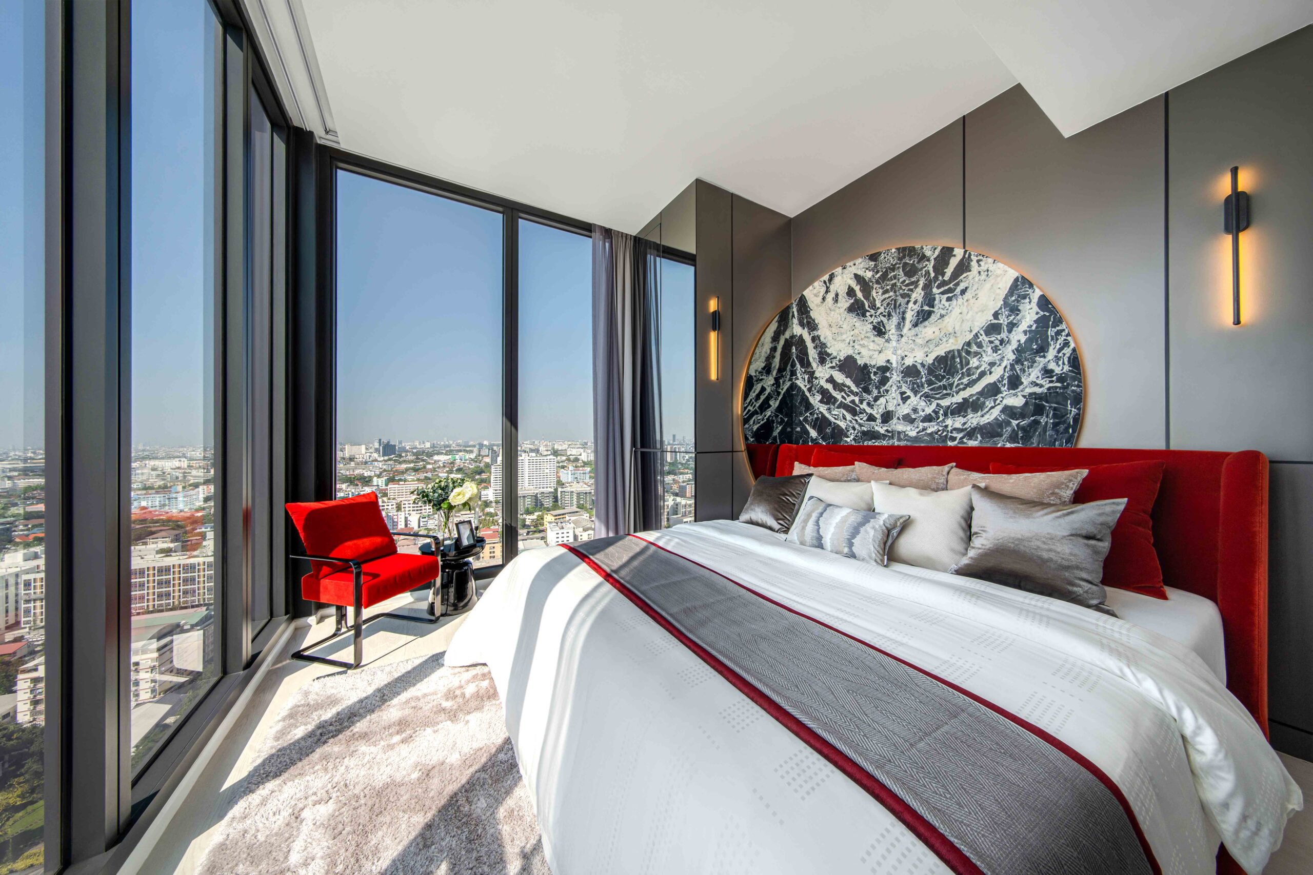 “สำหรับการเปิดตัวห้องตัวอย่างดีไซน์ใหม่ของ แมสซารีน รัชโยธิน ในครั้งนี้ สอดคล้องกับแนวทางการพัฒนาโครงการของ แกรนด์ ยูนิตี้ ที่คิดทุกองค์ประกอบ เพื่อตอบโจทย์การใช้ชีวิตและเติมเต็มความรู้สึกในการอยู่อาศัย โดยโครงการได้เลือกอัปเดตโฉมห้องขนาดใหญ่รูปแบบ 1 Bedroom Plus ขนาด 48 ตารางเมตร ที่มาพร้อมเพดานสูงถึง 3 เมตร มาจัดวางพื้นที่ใช้สอยภายอย่างเป็นสัดส่วน โดยคัดสรรเฟอร์นิเจอร์ที่มีคาแรกเตอร์โดดเด่นอย่างชุดโซฟา Scarlet Red ซึ่งทำหน้าที่เป็น Statement Piece สร้างเอกลักษณ์ให้กับห้องและเสริมด้านฟังก์ชันโดยเชื่อมต่อพื้นที่ใช้สอยของห้องนั่งเล่นกับห้องต่างๆ ได้อย่างคุ้มค่า โดยยังมีไฮไลท์อย่างห้องอเนกประสงค์หรือ Multi-Function Room ที่สามารถสร้างสรรค์ให้เป็นห้องทำงาน ห้องจัดมินิปาร์ตี้ ห้องนอนแขก หรือปรับตามไลฟ์สไตล์ของผู้อยู่อาศัยได้อย่างเต็มที่ นอกจากนี้ ห้องนอนยังถูกจัดวางในมุมที่สามารถดื่มด่ำวิวเมืองผ่านกระจกแบบ Full-Height ได้อย่างเต็มที่ เสริมความหรูหราและความสะดวกสบายด้วย Walk-in Closet ขนาดใหญ่ ที่มาพร้อมเฟอร์นิเจอร์แบบครบชุด และอีกจุดที่สร้างความประทับใจให้กับลูกค้าก็คือ พื้นที่ส่วนกลางขนาดใหญ่จำนวน 3 ชั้น หรือ Triple Floor Sky Facilities ที่รวบรวมความพิเศษไว้มากมาย ตั้งแต่ชั้น 36 ที่มี Shade and Shine Sky Pool สระว่ายน้ำระบบเกลือที่มีทั้งโซนในร่มและกลางแจ้ง Sky Fitness และ Sky Lounge พื้นที่สำหรับออกกำลังกายและพักผ่อนที่มองเห็นวิวแบบพาโนรามิครอบด้าน นอกจากนี้ ยังมี Party Room และ Exclusive Foyer & Bar บนชั้น 37 สำหรับจัดปาร์ตี้สังสรรค์กับเพื่อนหรือ ดินเนอร์โรแมนติกแบบเป็นส่วนตัว และพื้นที่สีเขียว Sky Garden บนชั้น Rooftop” นายกำพล กล่าวสรุป
