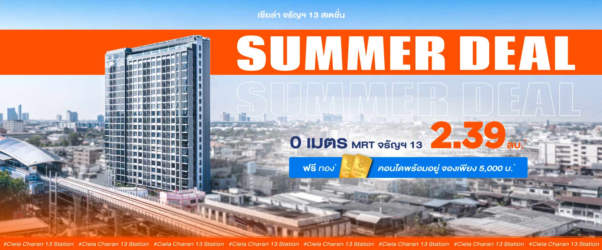 แกรนด์ ยูนิตี้ ส่งโปรโมชั่นสุดพิเศษดับร้อนซัมเมอร์นี้ กับโปรสุดฮอต ดีลสุดคุ้ม “SUMMER DEAL” กับโครงการ เซียล่า จรัญฯ 13 สเตชั่น (CIELA Charan 13 Station) คอนโดมิเนียมพร้อมอยู่ 0 เมตร ติด MRT สถานีจรัญฯ 13 พร้อมพบกับดีลสุดคุ้มทะลุทุกองศา และฟรี ทองทุกยูนิต* ในราคาเริ่มต้นเพียง 2.39 ล้านบาท* ตลอดเดือนเมษายนนี้ เท่านั้น