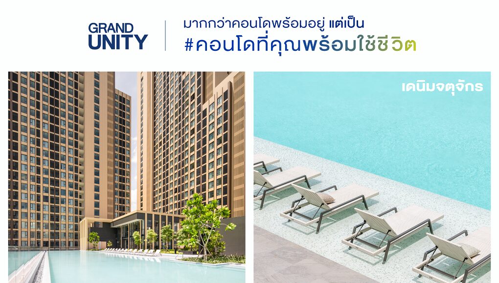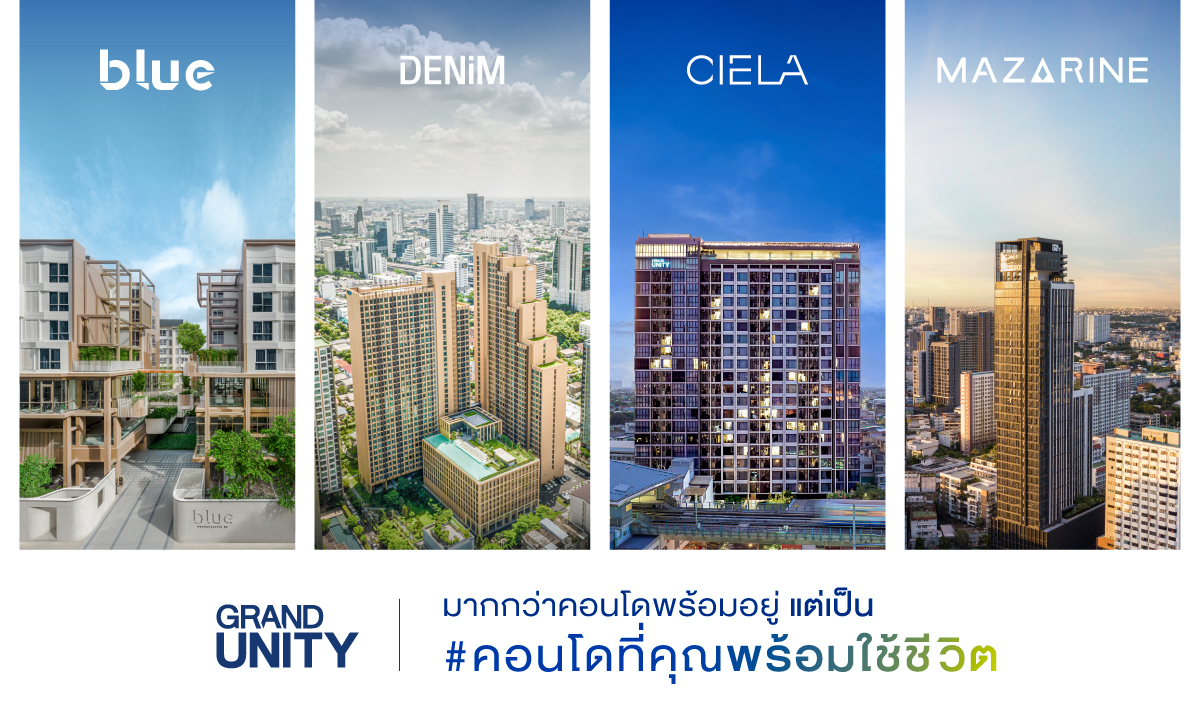 แกรนด์ ยูนิตี้ เปิดตัวแคมเปญ “#คอนโดที่คุณพร้อมใช้ชีวิต” ประกาศจุดยืนแบรนด์ที่มุ่งพัฒนาโครงการเพื่อตอบโจทย์ทุกไลฟ์ไตล์การอยู่อาศัยของทุกเจเนอเรชั่น สอดรับกับคอนโดมิเนียมจาก แกรนด์ ยูนิตี้ ที่ปัจจุบันสร้างเสร็จพร้อมเข้าอยู่ทุกโครงการ ชู 4 แบรนด์เรือธง จาก “BLUE Series” ได้แก่ บลู (blue), เดนิม (DENIM), เซียล่า (CIELA) และแมสซารีน (MAZARINE) พร้อมไฮไลต์จุดเด่นด้านทำเลใกล้รถไฟฟ้า ที่มาพร้อมความคุ้มค่า ด้วยราคาและโปรโมชั่นสุดพิเศษ ตั้งแต่วันนี้ – 30 ก.ย.67