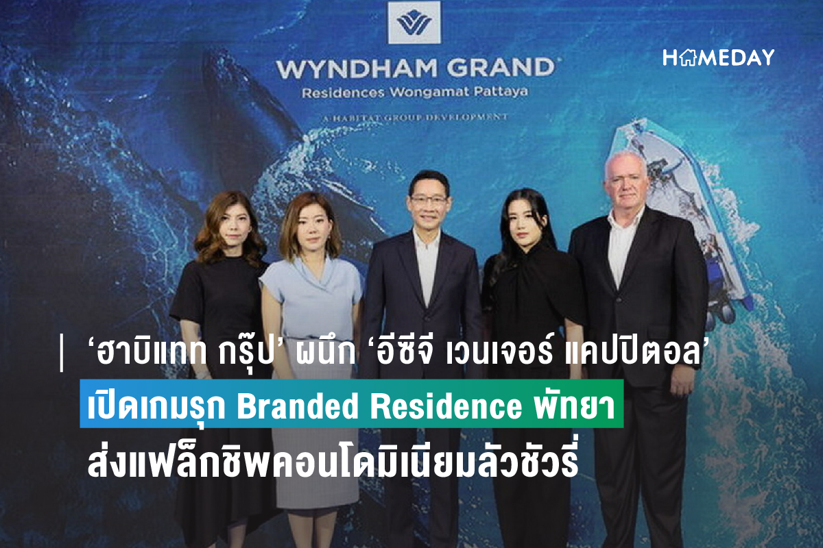 “ฮาบิแทท กรุ๊ป” จับมือ ‘อีซีจี เวนเจอร์ แคปปิตอล’ ร่วมลงทุนปั้นแฟล็กชิพโปรเจ็กต์ Branded Residence ครั้งแรก “วินแดม แกรนด์ เรสซิเดนซ์ วงศ์อมาตย์ พัทยา” (Wyndham Grand Residences Wongamat Pattaya) มูลค่า 3,500 ล้านบาท สู่แลนด์มาร์คแห่งใหม่บนสุดยอดทำเลไพร์มของหาดวงศ์อมาตย์ พัทยา มาตรฐานแห่งความหรูหราระดับเวิลด์คลาส ‘The New Standard of Luxury Resort Living’ พร้อม Seaview ทุกยูนิต และบริการแบบ Concierge Service เปิดประสบการณ์ระดับลักชัวรี่สุดคุ้มค่าทั้งซื้อเพื่อเป็น Vacation Home และการลงทุนเพื่ออนาคต ราคาเริ่มต้น 4.79 – 60 ล้านบาท