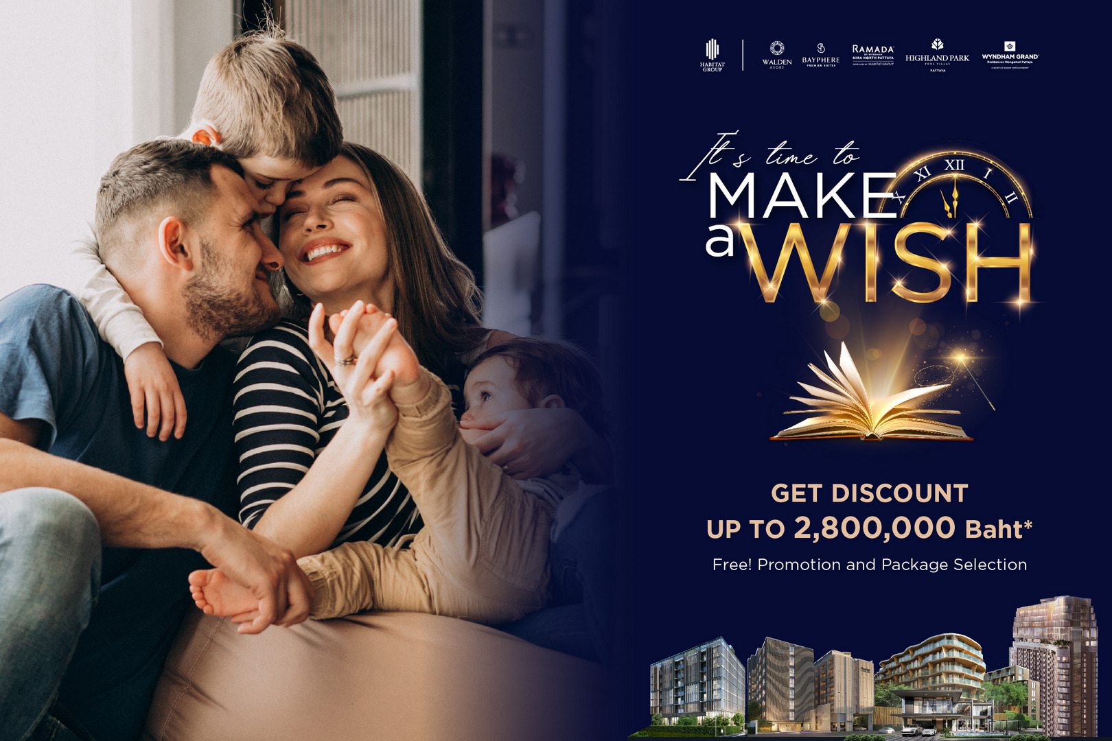 ‘ฮาบิแทท กรุ๊ป’ คัด 5 โครงการลักชัวรีเพื่ออยู่อาศัยและการลงทุนกับสุดยอดทำเล อโศก – สุขุมวิท – พัทยา จัดโปรโมชั่นใหญ่ส่งท้ายปี ผ่านแคมเปญ “IT’S TIME TO MAKE A WISH” แจกหนักจัดเต็มกับส่วนลดเพิ่มหรือรับคืนสูงสุด 2,800,000 บาท* และเลือกรับบัตรกำนัล Voucher Selection for HIS / HER / US กับของขวัญสุดพิเศษ ตอบโจทย์ทุกไลฟ์สไตล์ทั้งทริปล่องเรือยอช์ท บัตรกำนัลสำหรับช้อปปิ้ง ที่พักโรงแรมวิลล่าสุดหรู หรือคอร์สโอมากาเสะ และอื่นๆ อีกมากมาย รวมมูลค่ากว่า 300,000 บาท* ตั้งแต่วันนี้ – 15 ม.ค. 67