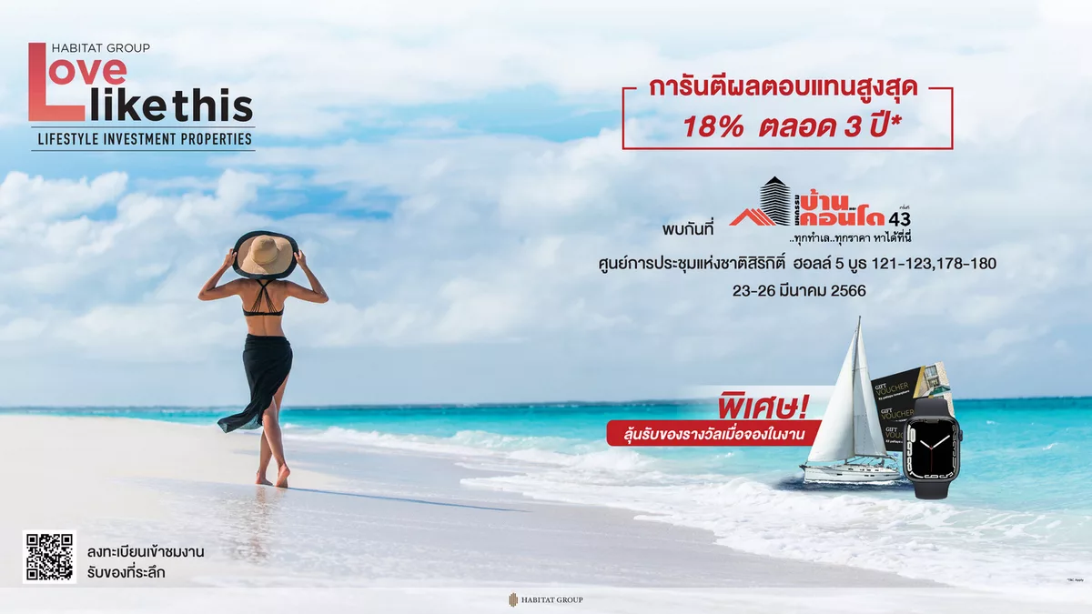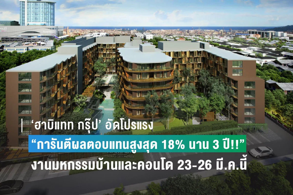 ฮาบิแทท กรุ๊ป ลุยโกยยอดขายต่อเนื่อง อัดโปรโมชั่นแรง แจกหนักจัดเต็ม การันตีผลตอบแทนสูงสุด 18% นาน 3 ปี* พร้อมมอบแพ็คเกจ Voucher ล่องเรือสุดเอ็กซ์คลูซีฟ จองเท่าไหร่ รับคืนเต็มจำนวน และหากเปลี่ยนใจยินดีคืนเงินจอง พร้อมลุ้นรับของรางวัลมากมาย ในงานมหกรรมบ้านและคอนโด ครั้งที่ 43 ระหว่างวันที่ 23-26 มี.ค.นี้ ณ ศูนย์การประชุมแห่งชาติสิริกิติ์ หวังสร้างยอดขาย 100 ล้านบาท